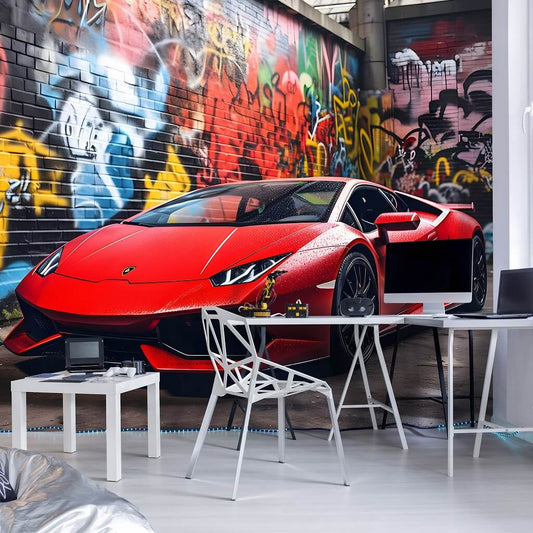 Red Sports Cars & Transport Non-woven Photo Wallpaper (W x H) 312 cm x 219 cm (123" x 86")
