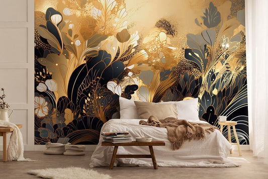 Black and Gold Botanical Artistic Decor Non-woven Photo Wallpaper (W x H) 312 cm x 219 cm (123" x 86")