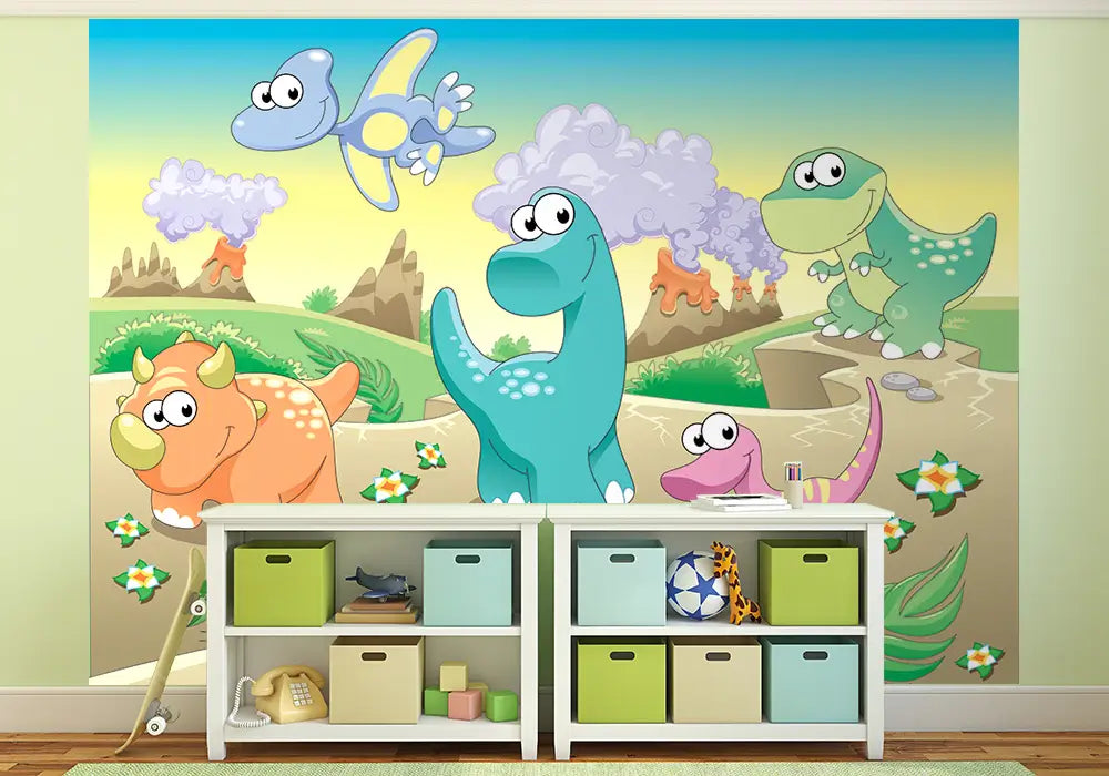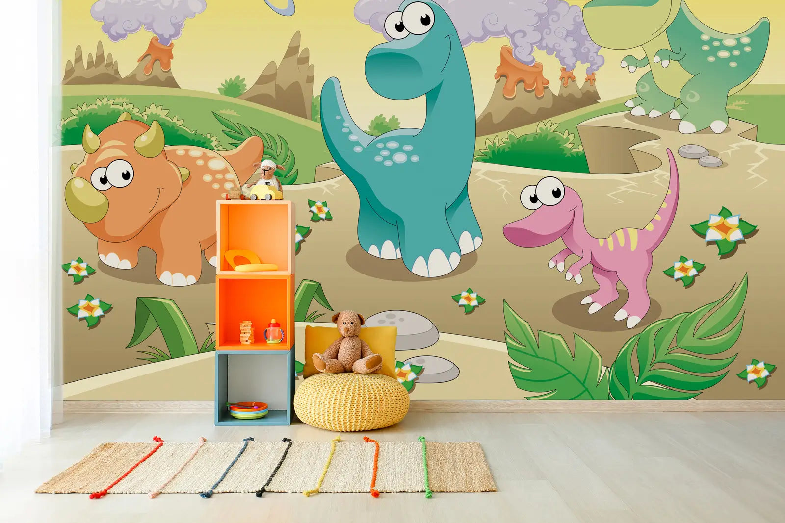 Cartoon Dinosaurs Nursery Photo Wallpaper