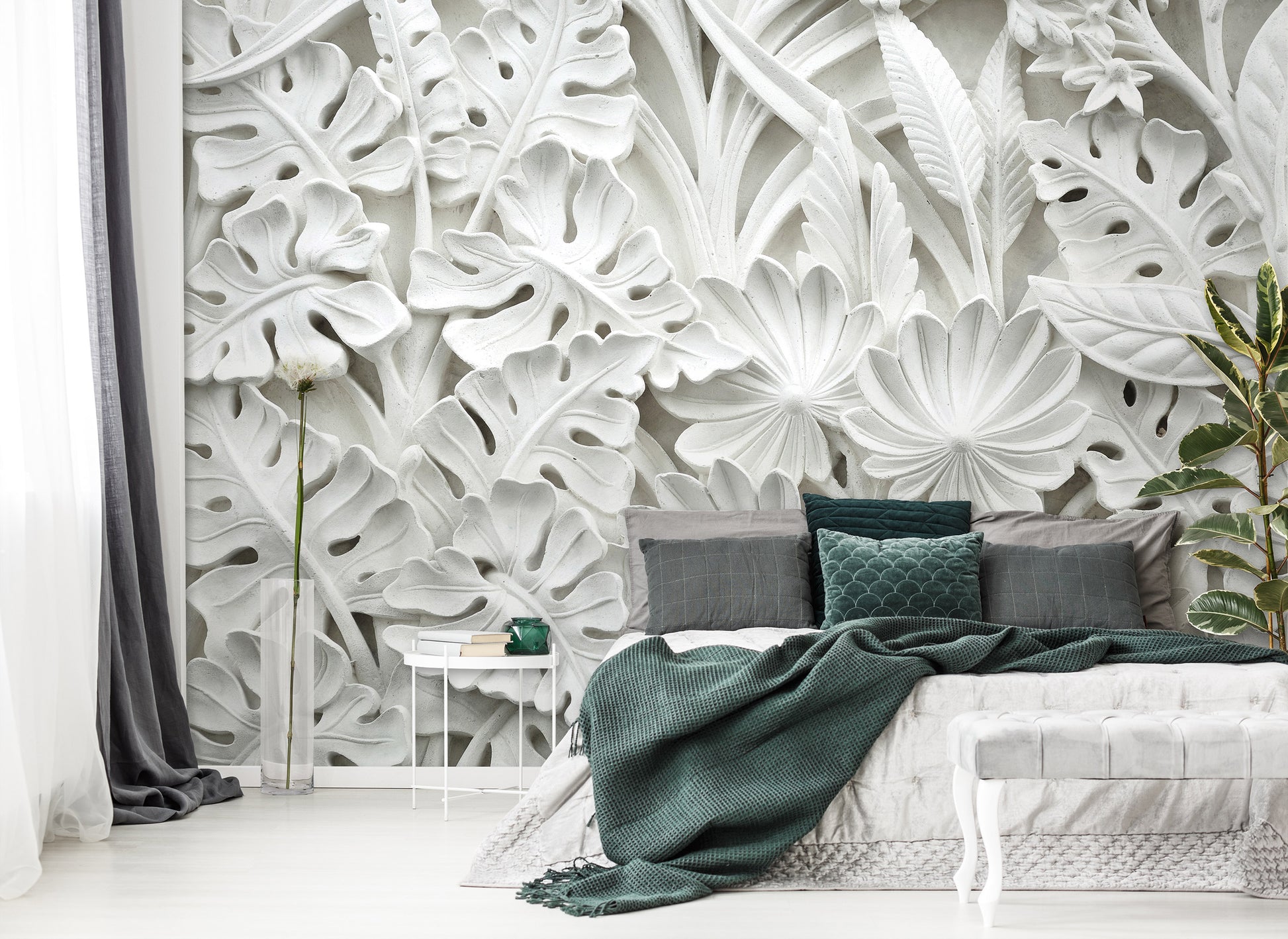 Alabaster Flowers White Non-woven Photo Wallpaper (W x H) 368 cm x 254 cm (144" x 100")