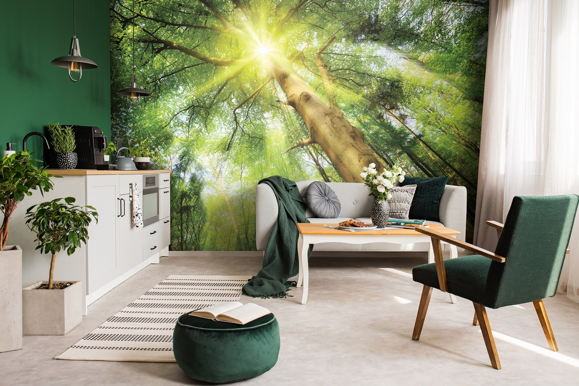 Green Summer Forest Scenery Nature Non-woven Photo Wallpaper (W x H) 312 cm x 219 cm (123" x 86")