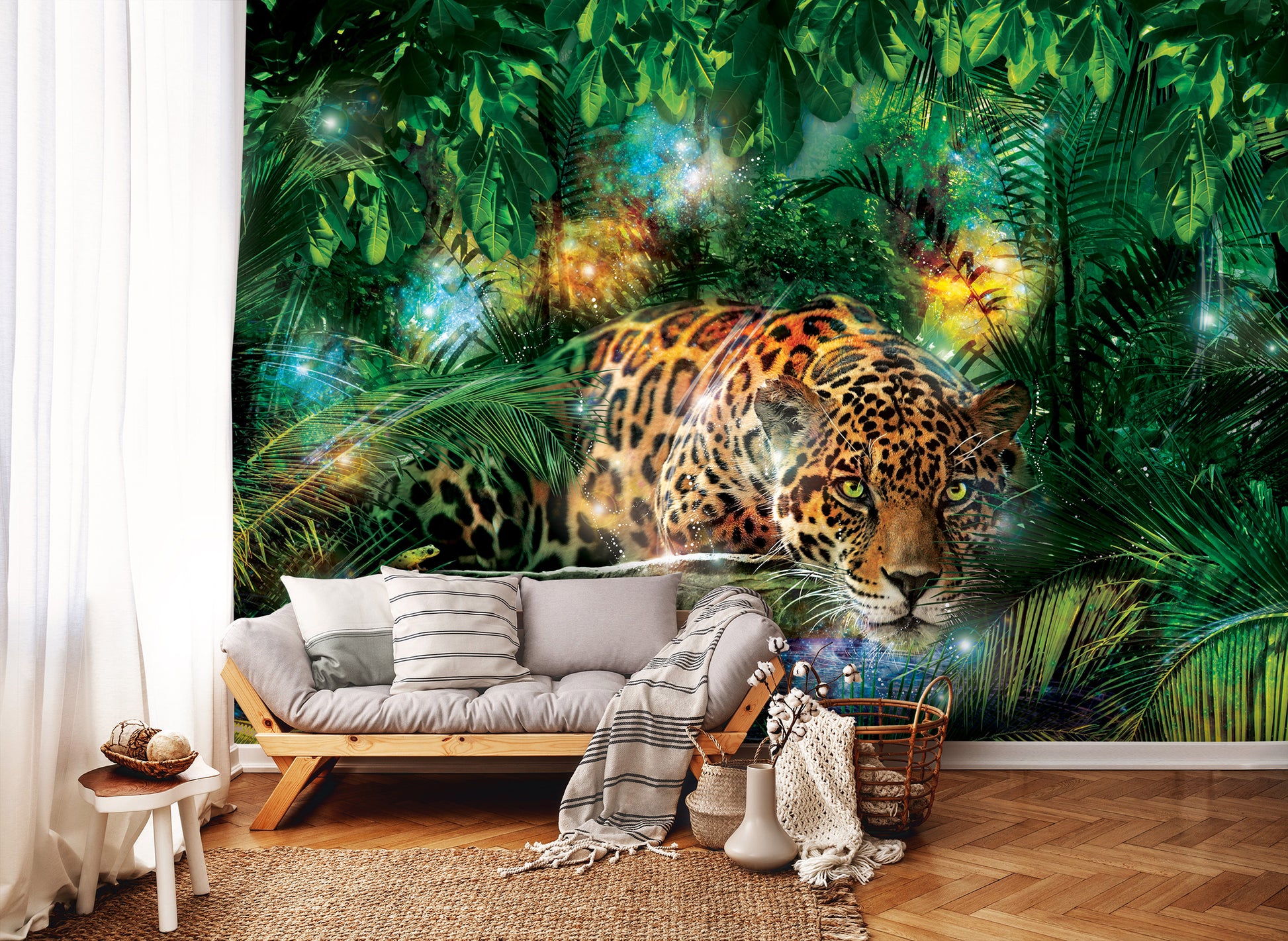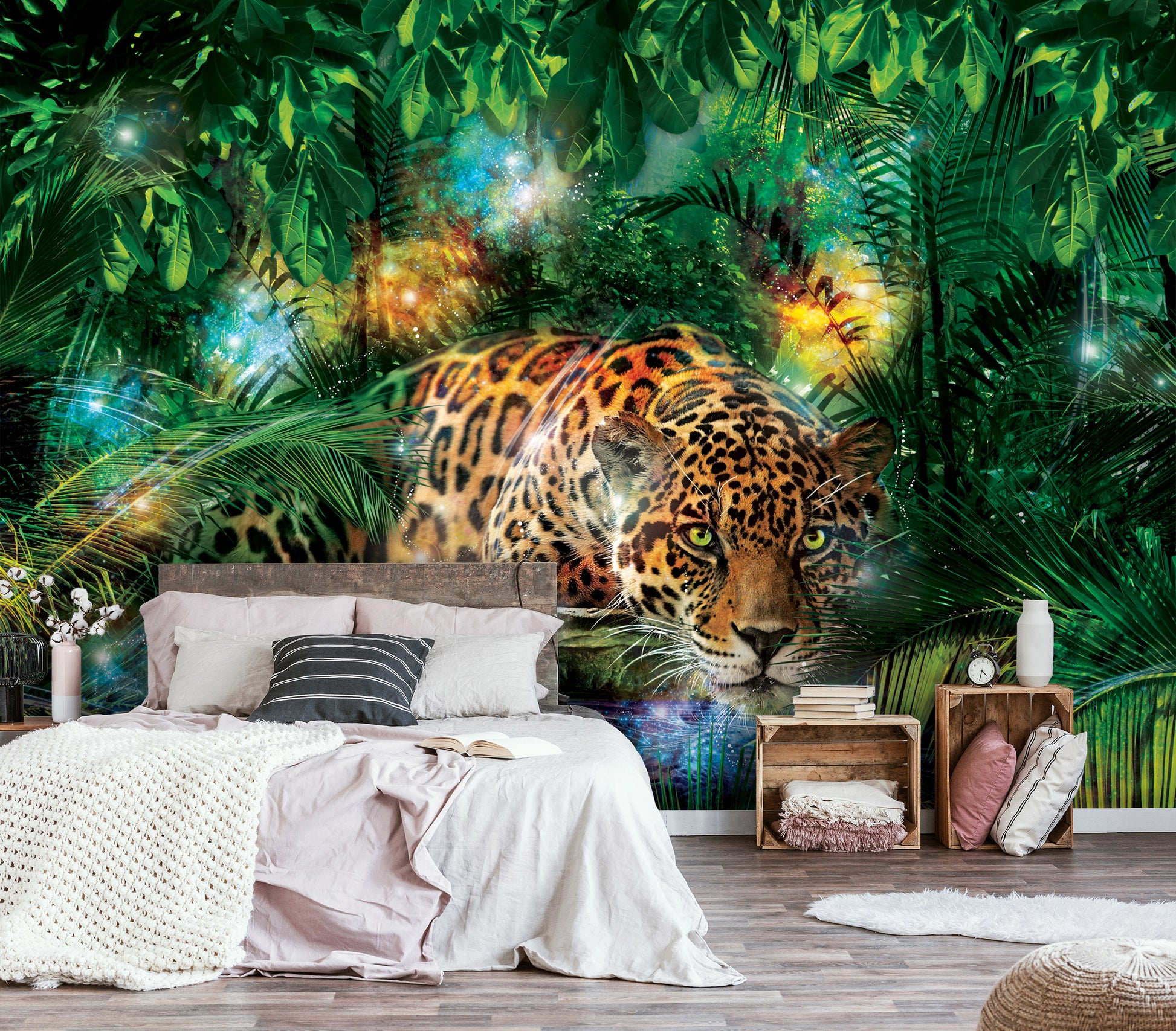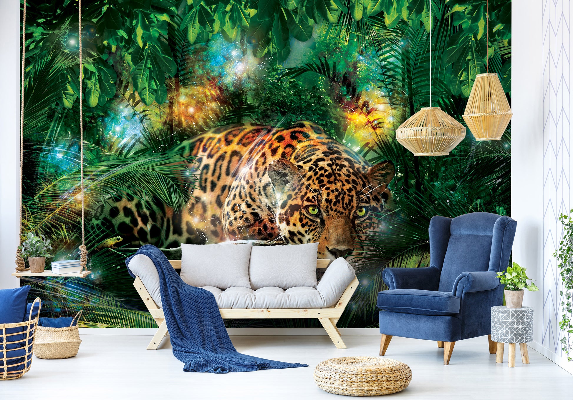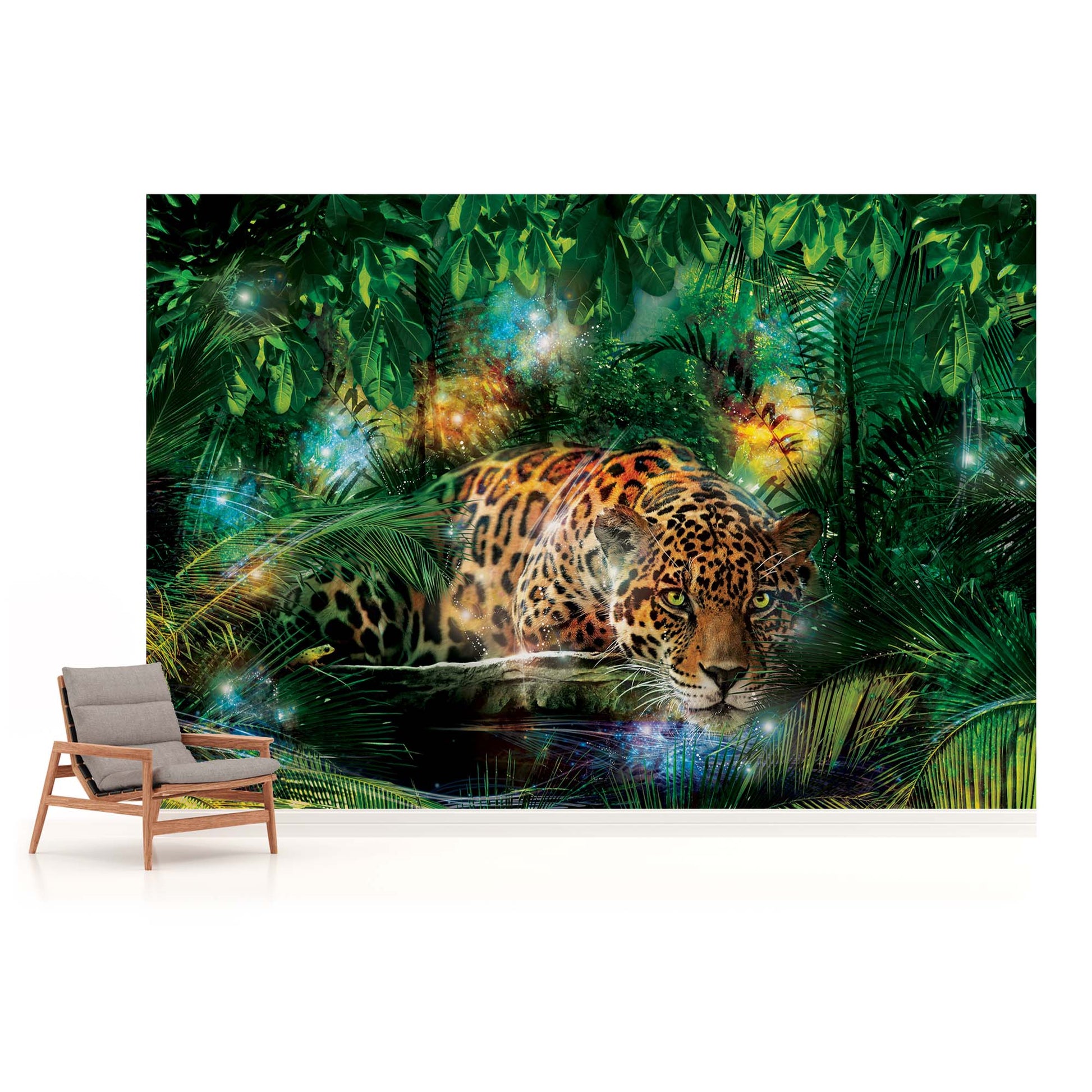 Wild Leopard in the Jungle Dining Room Animal Non-woven Photo Wallpaper (W x H) 368 cm x 254 cm (144" x 100")