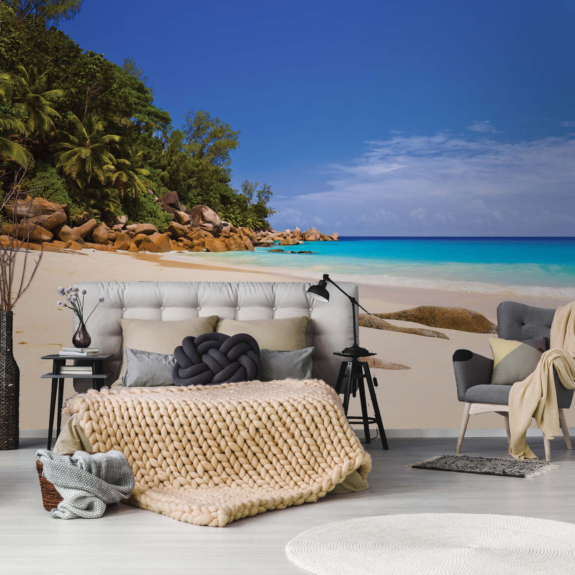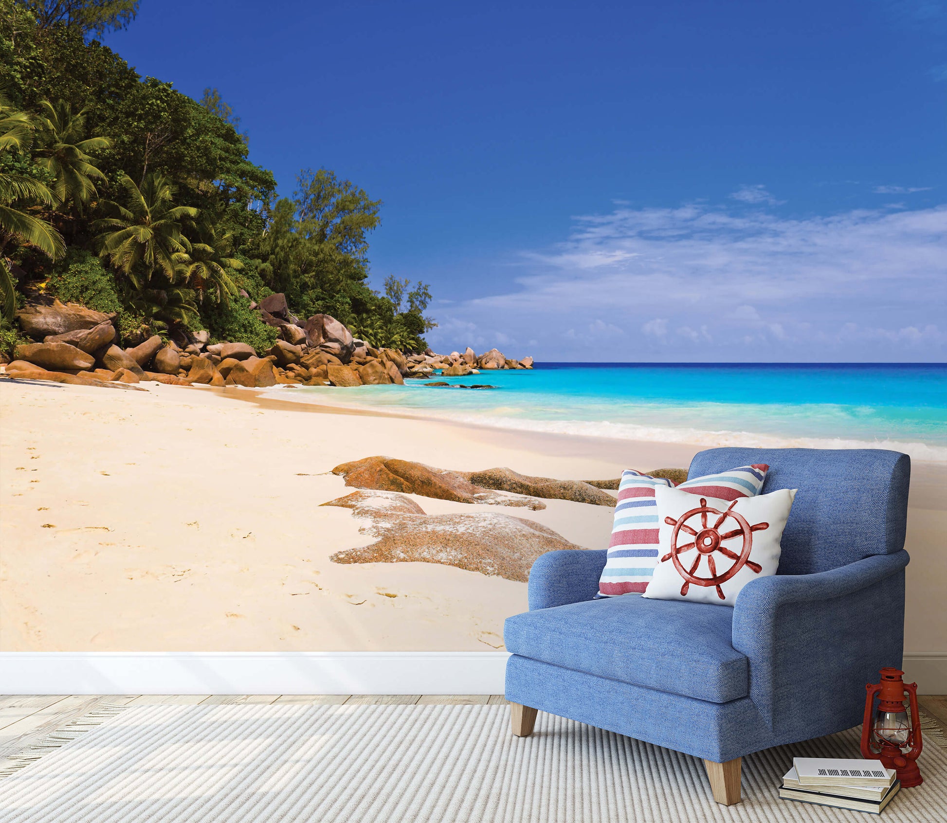 Sandy Beach Living Room Tropical Scenery Non-woven Photo Wallpaper (W x H) 368 cm x 254 cm (144" x 100")