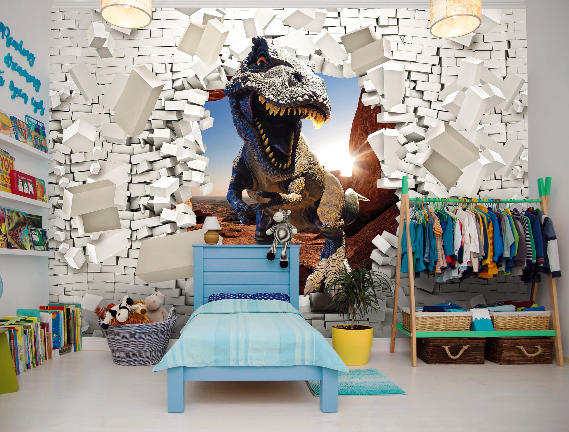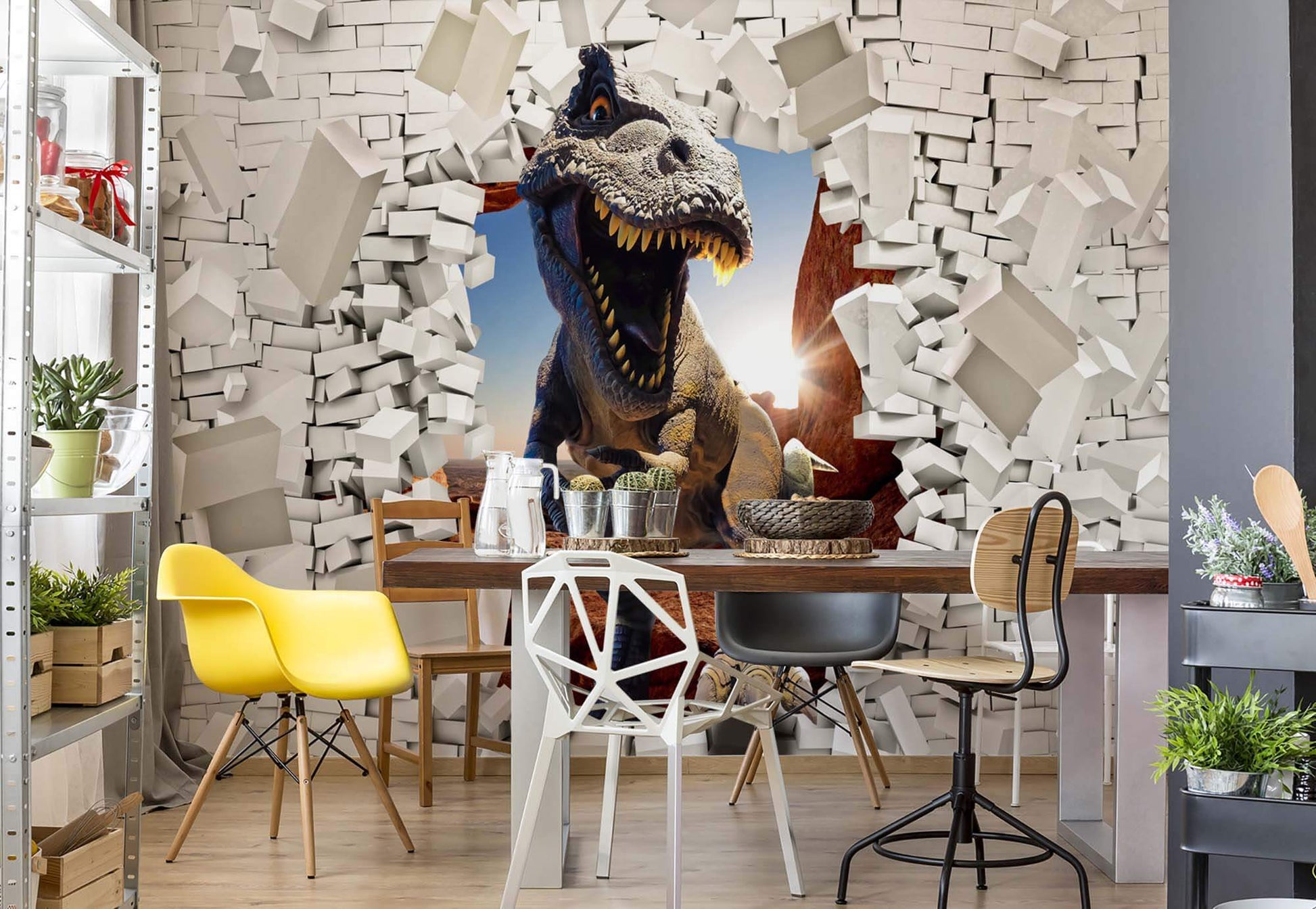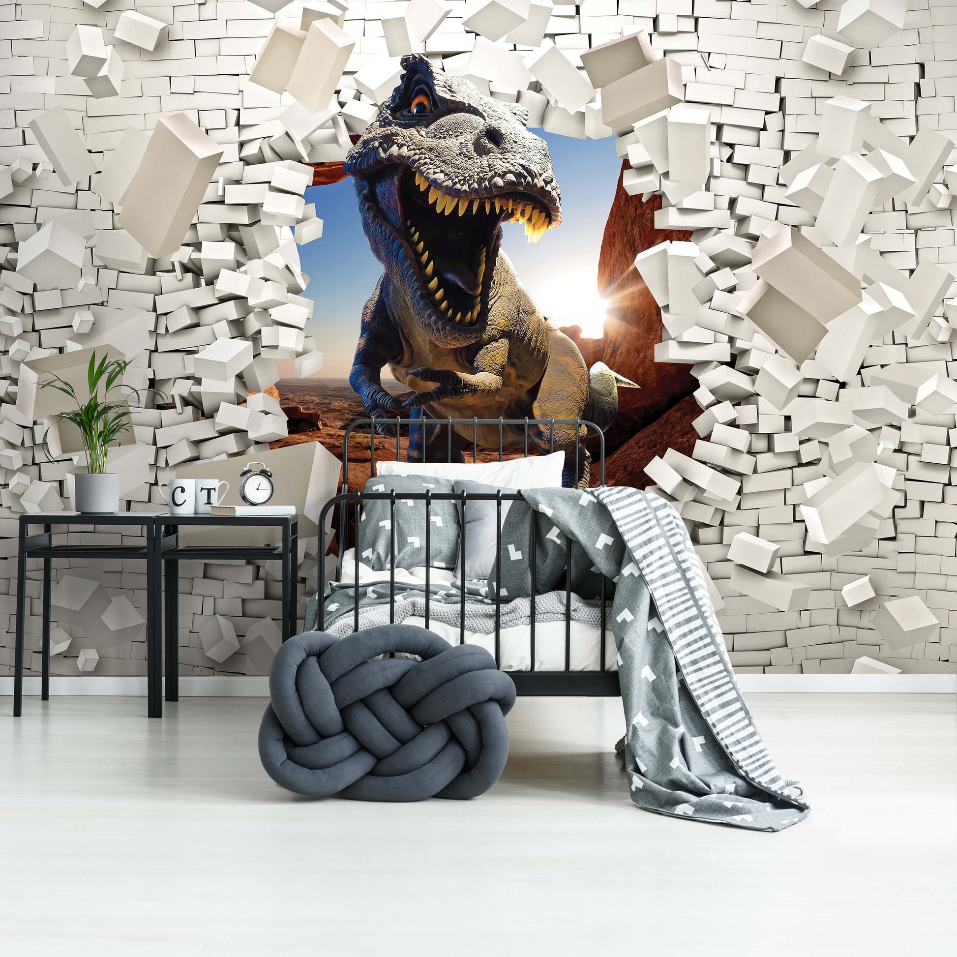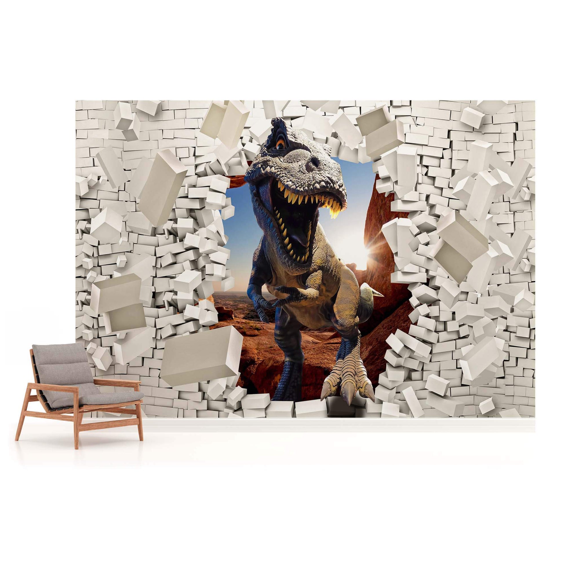 Dinosaur Crushing Brick Wall Animal Non-woven Photo Wallpaper (W x H) 312 cm x 219 cm (123" x 86")