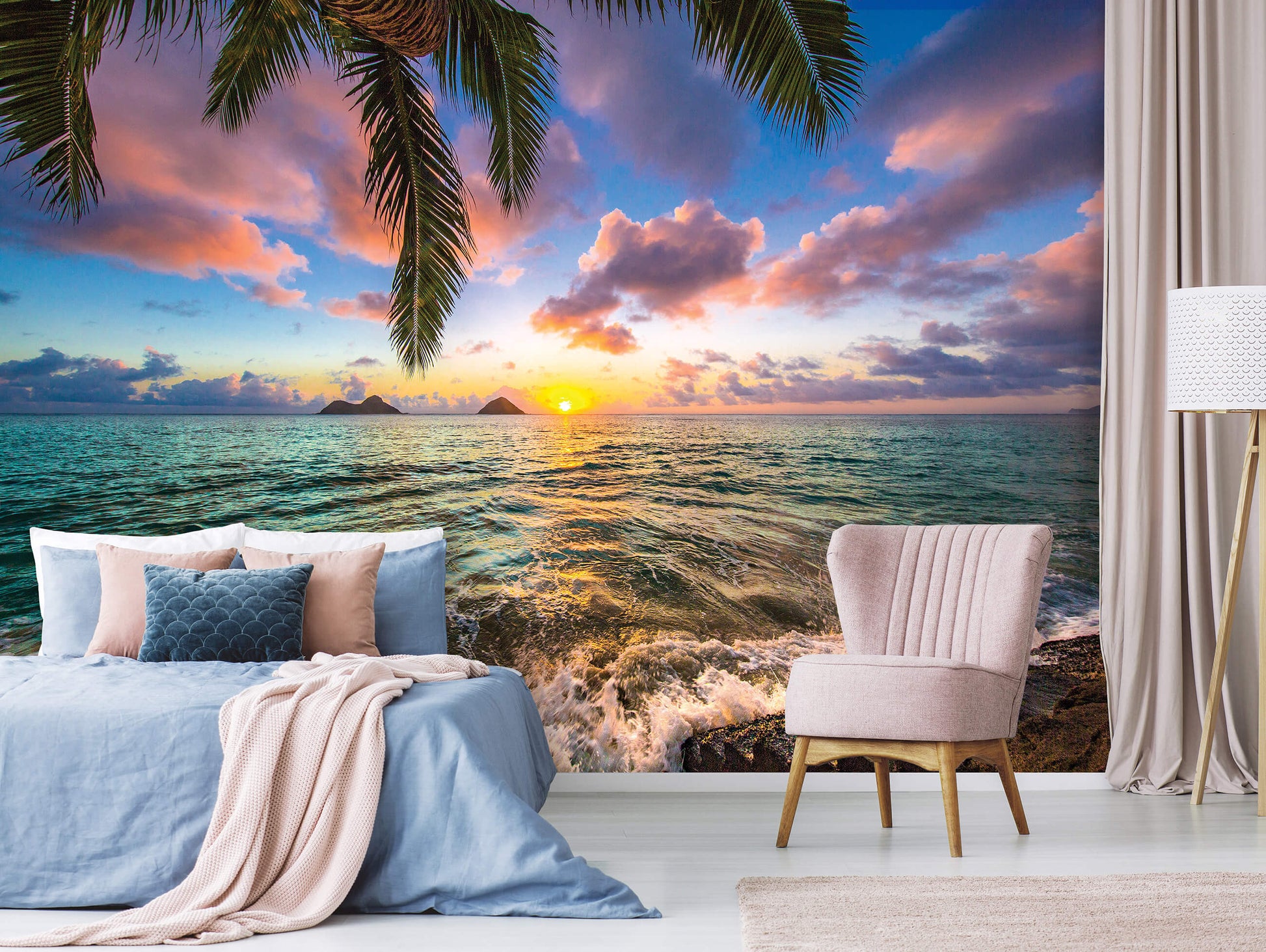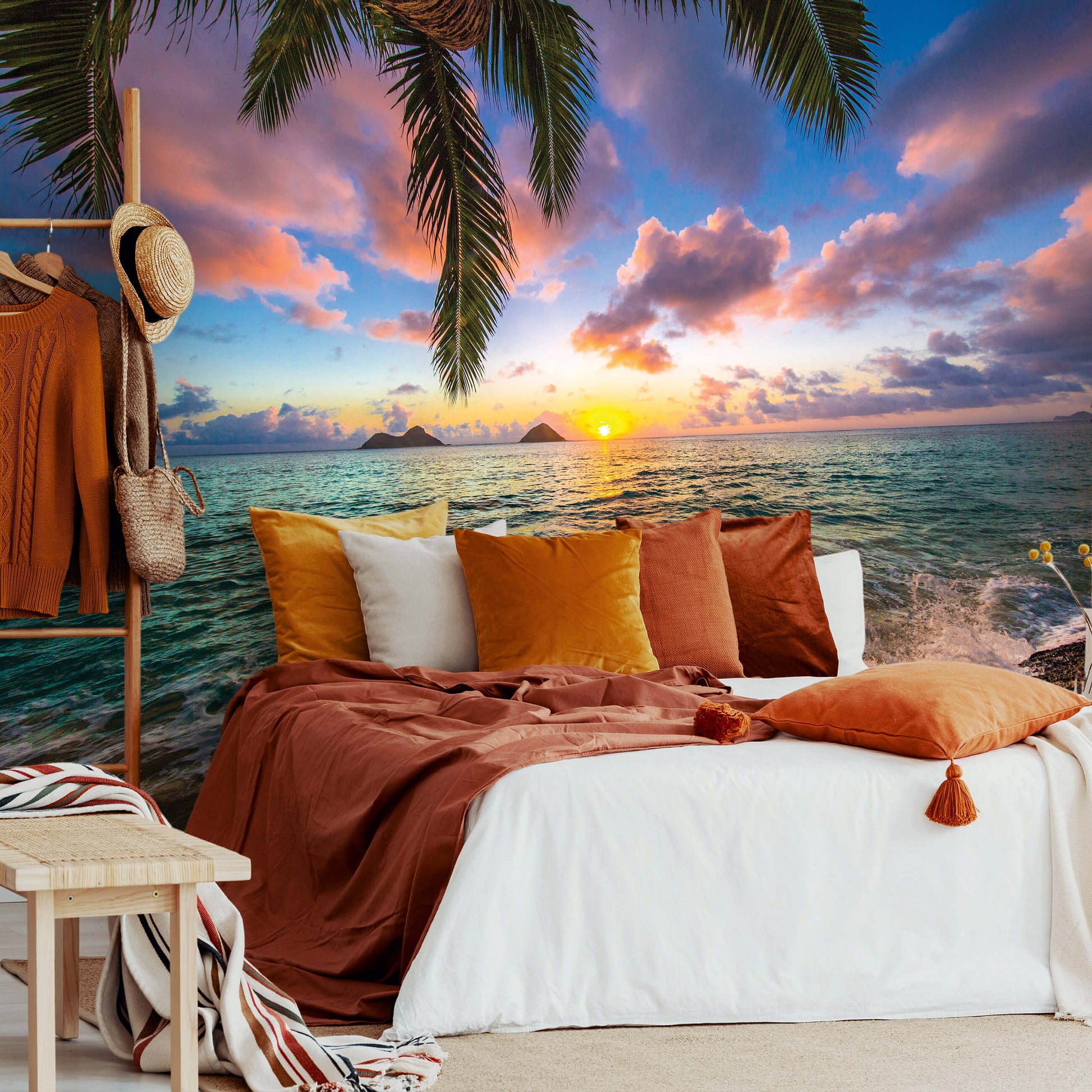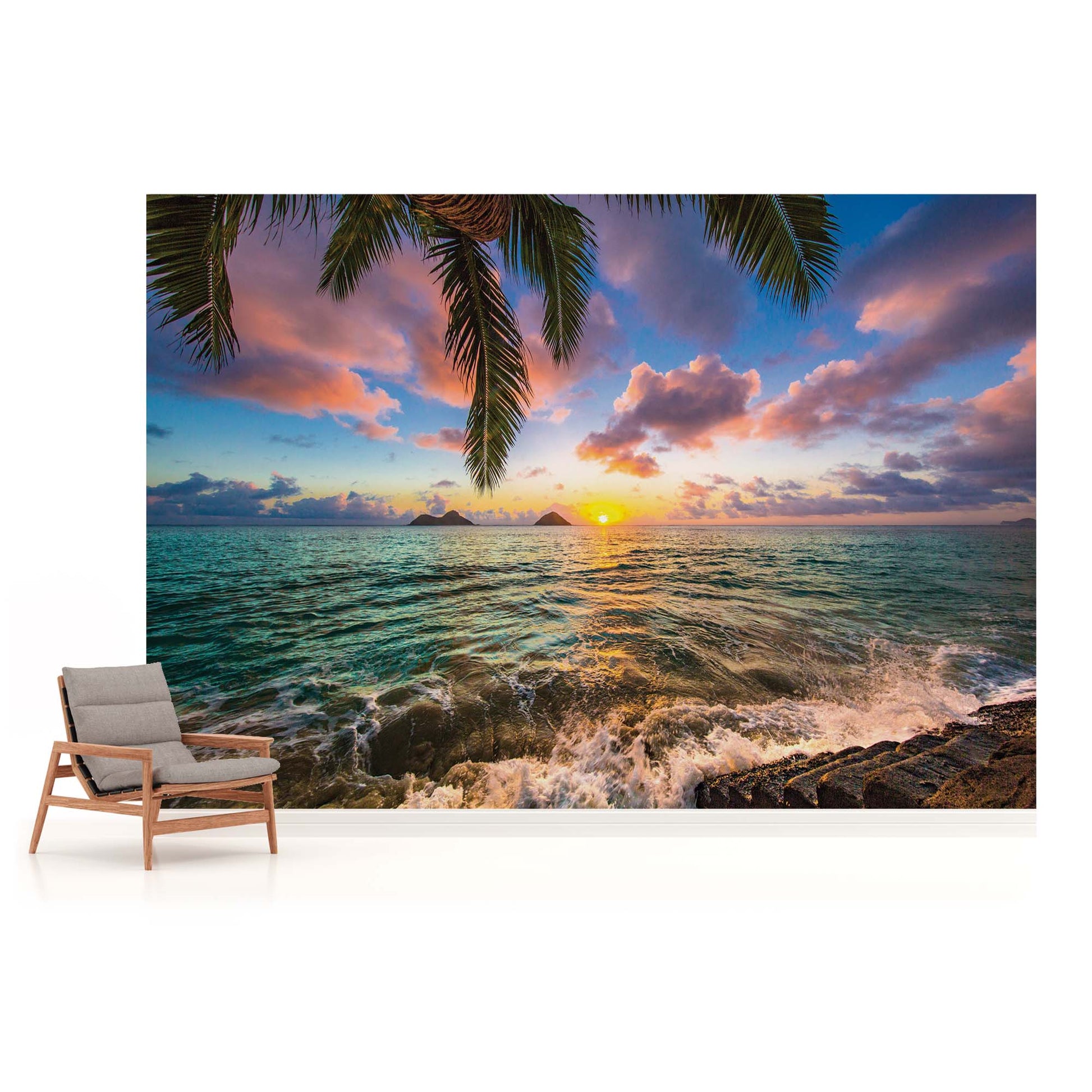 The Setting Sun Over the Ocean Tropical Scenery Non-woven Photo Wallpaper Size Selection