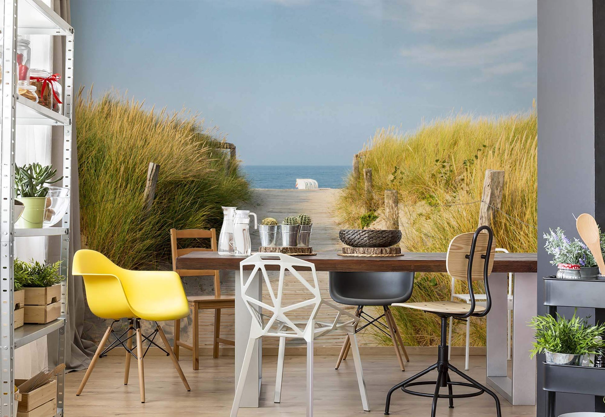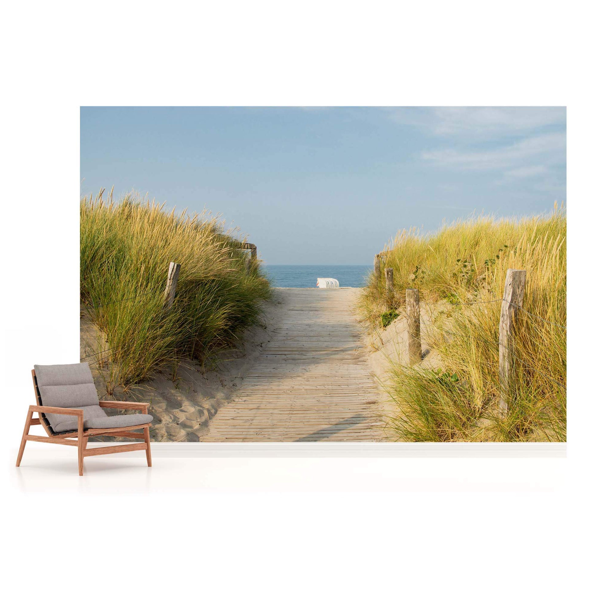 Sandy Beach Covered with Grass Nature Non-woven Photo Wallpaper (W x H) 368 cm x 254 cm (144" x 100")
