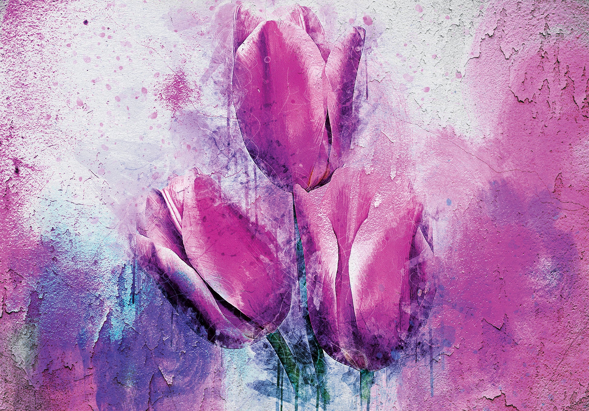 Purple Tulips Composition Painted Floral Non-woven Photo Wallpaper (W x H) 312 cm x 219 cm (123" x 86")
