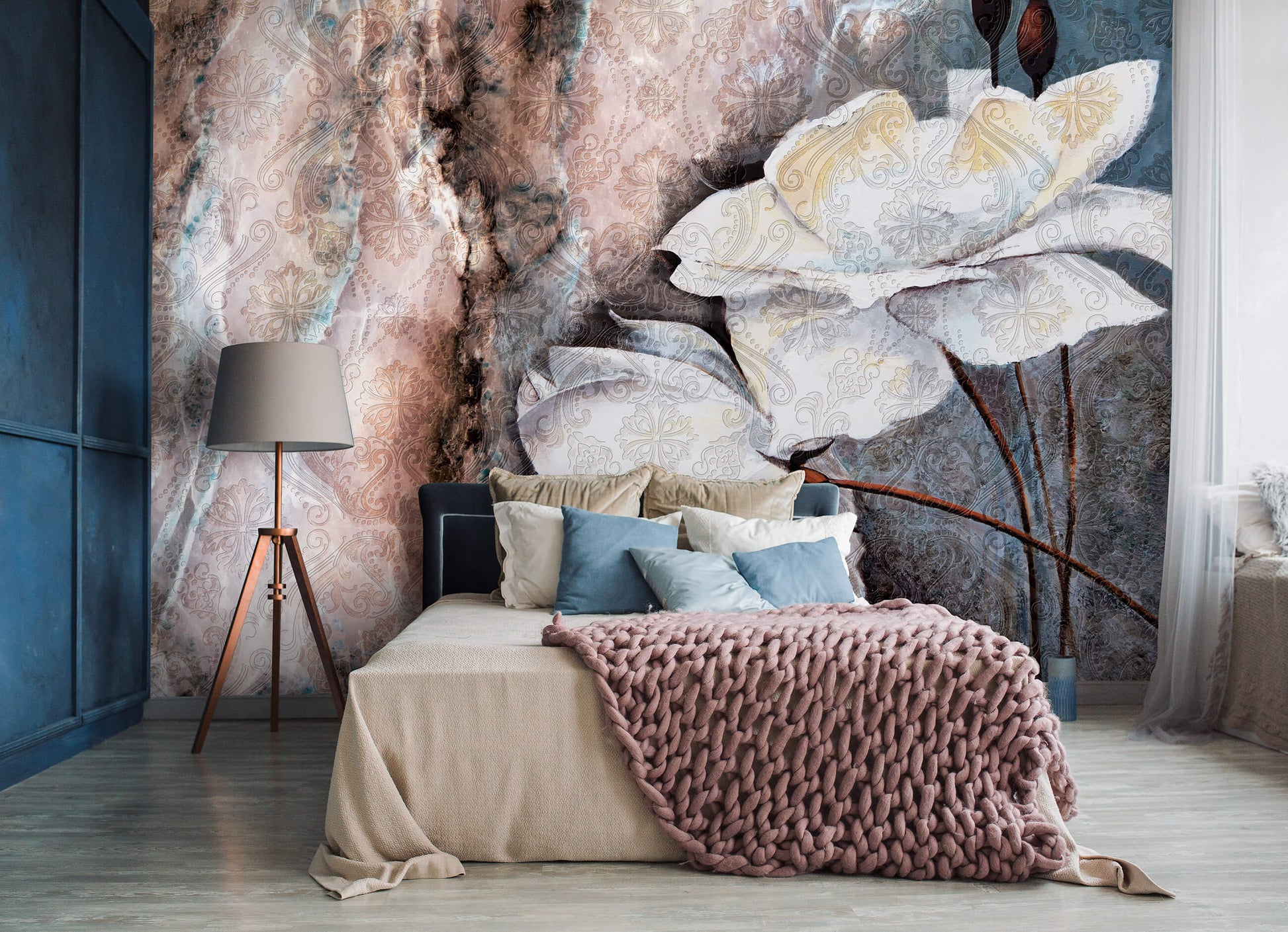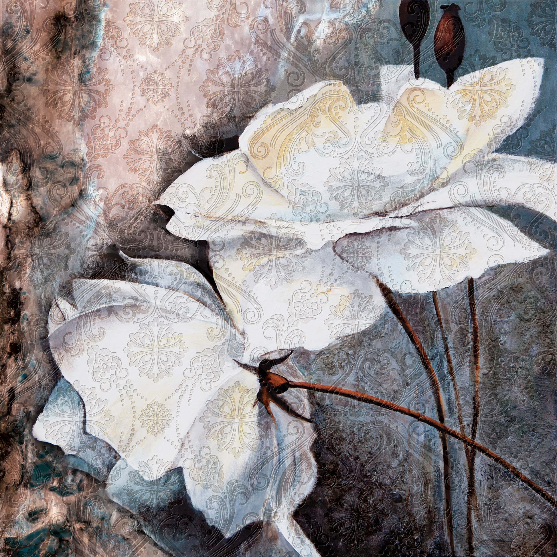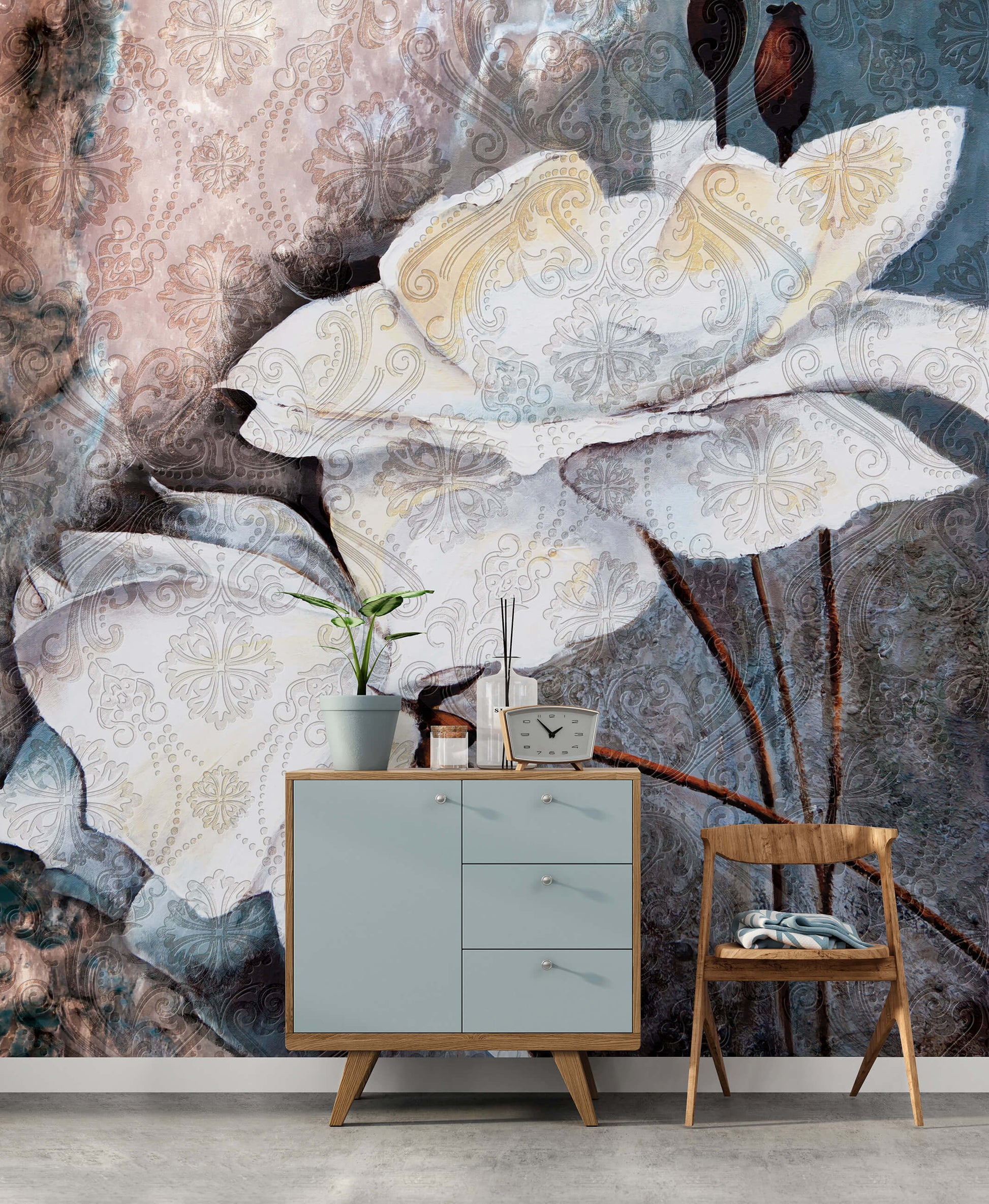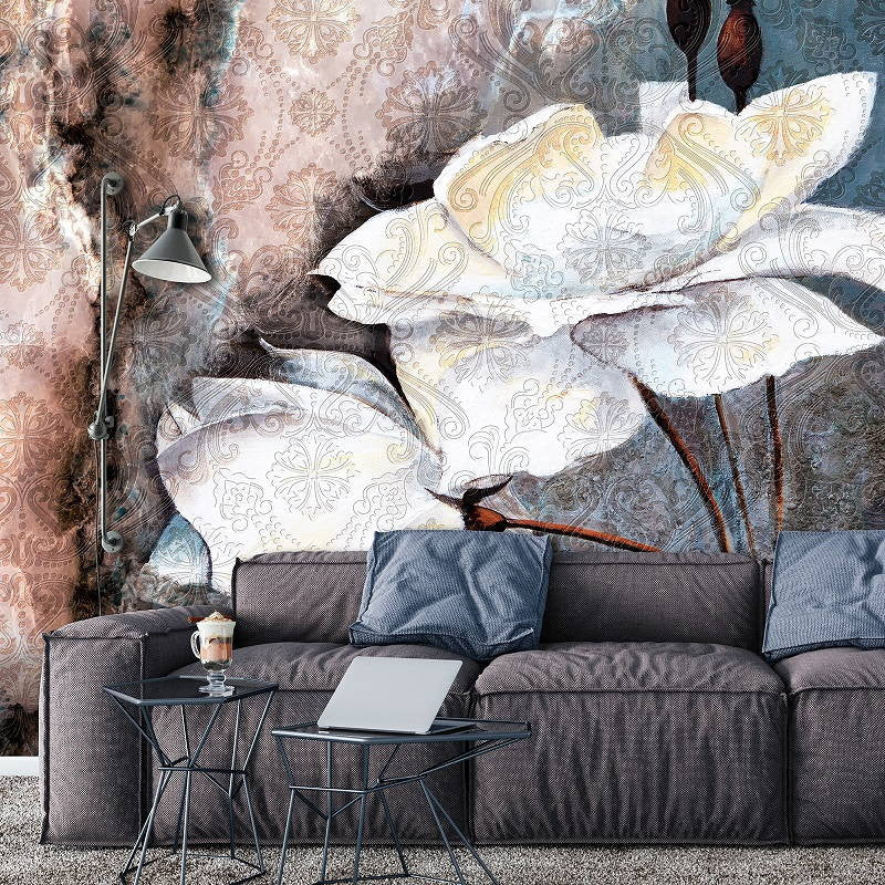 Abstract Floral Composition White Floral Non-woven Photo Wallpaper (W x H) 312 cm x 219 cm (123" x 86")