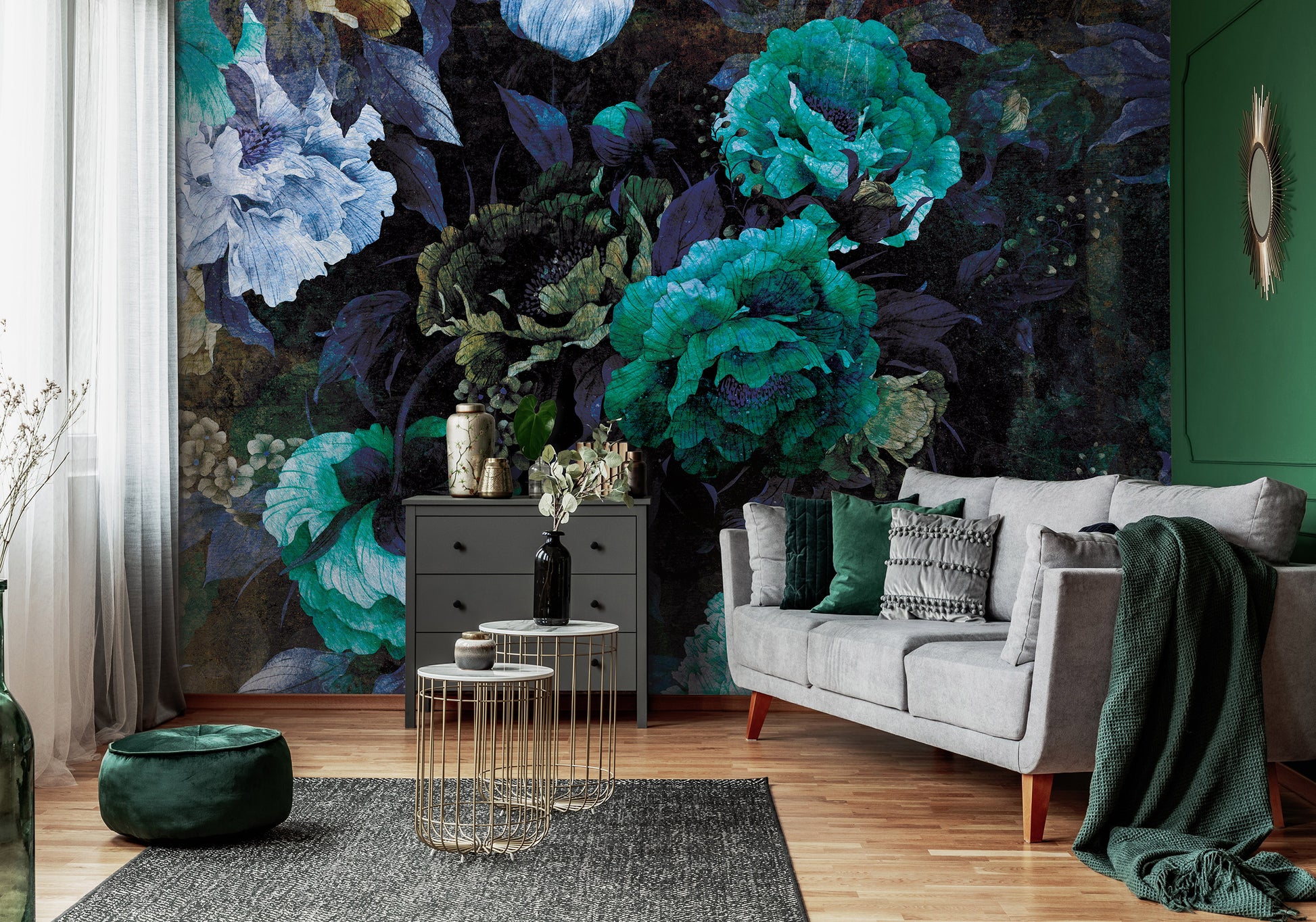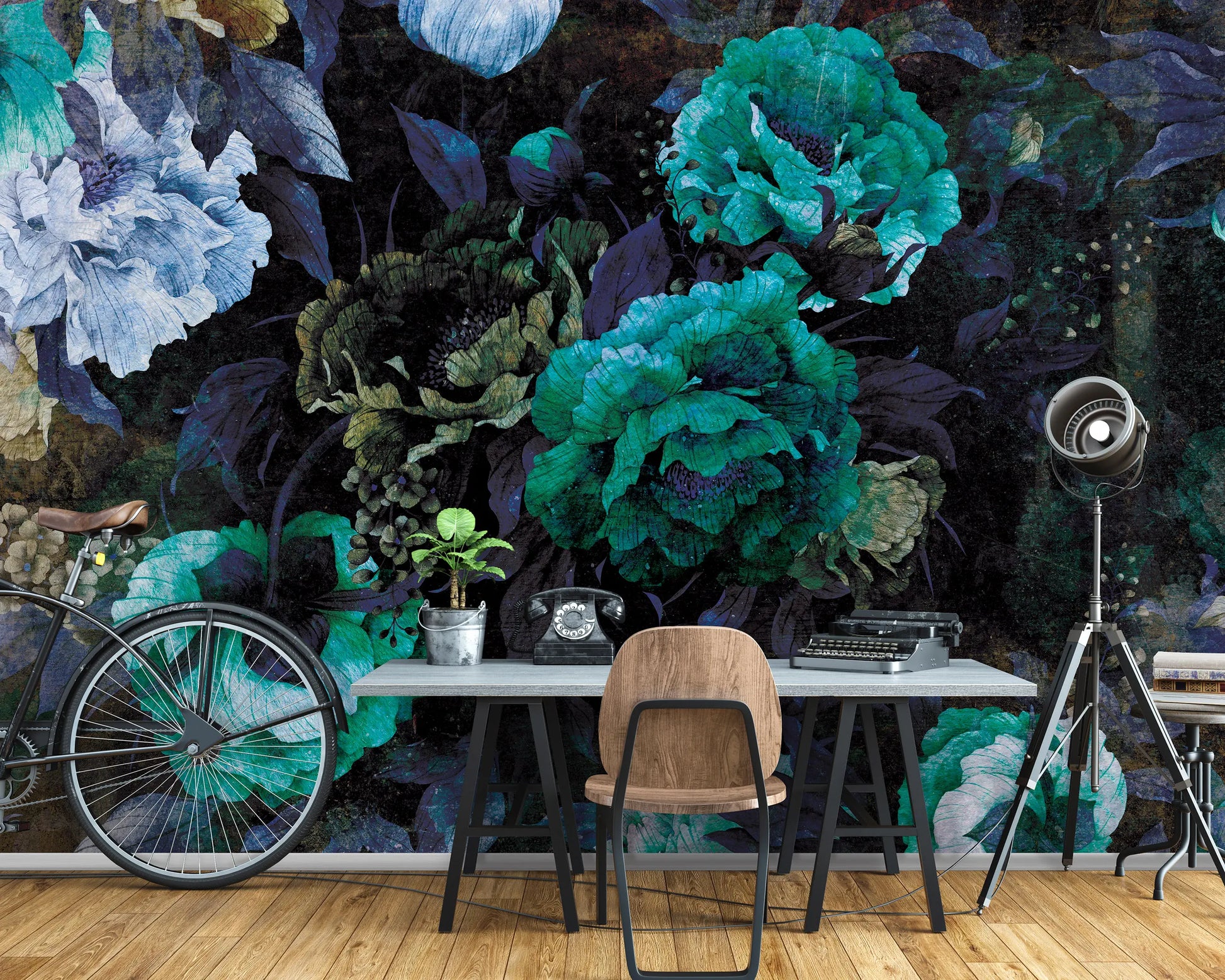 - Non-woven Photo Wallpaper - "Dark Colors Floral Bedroom Decor"