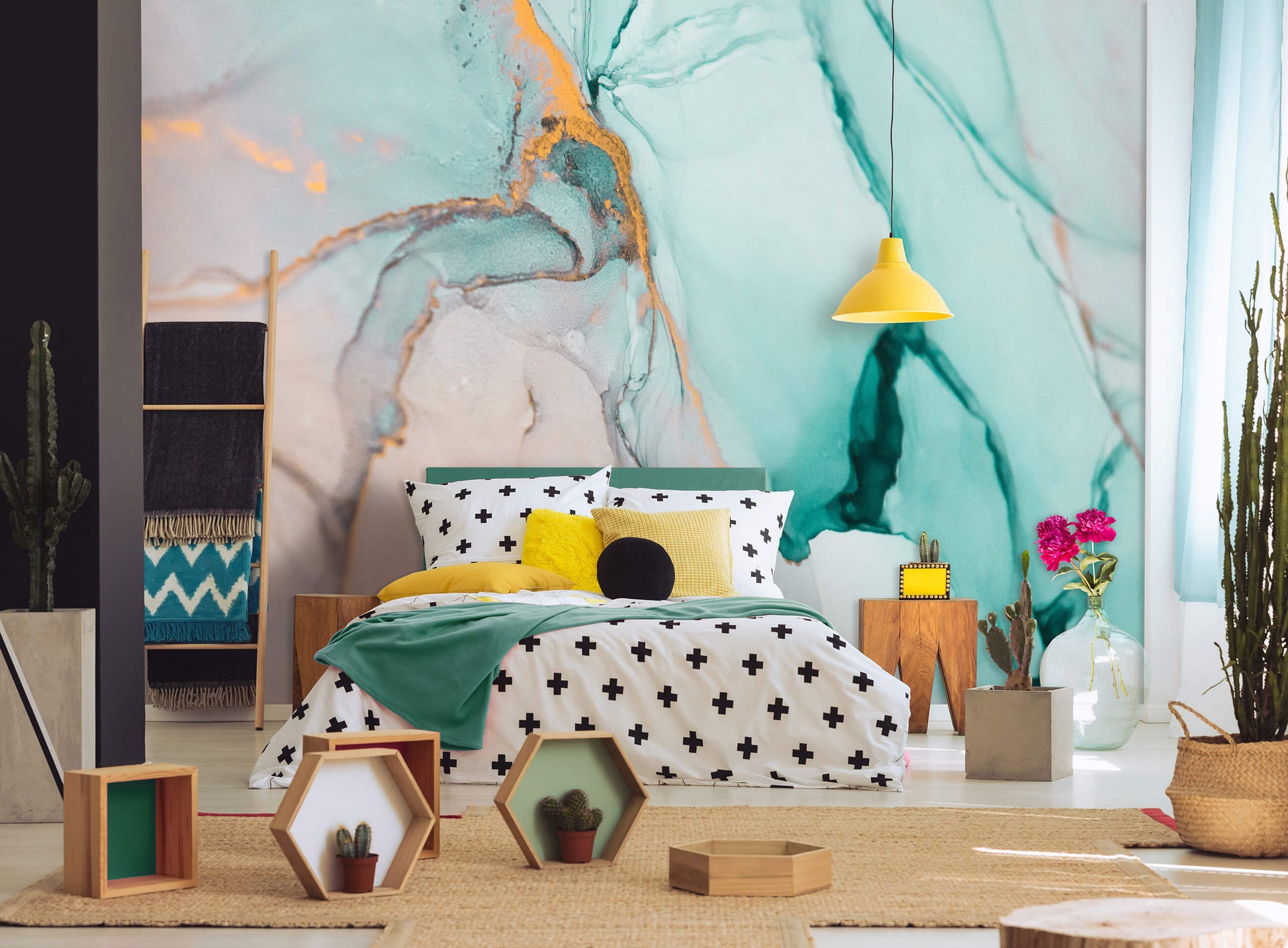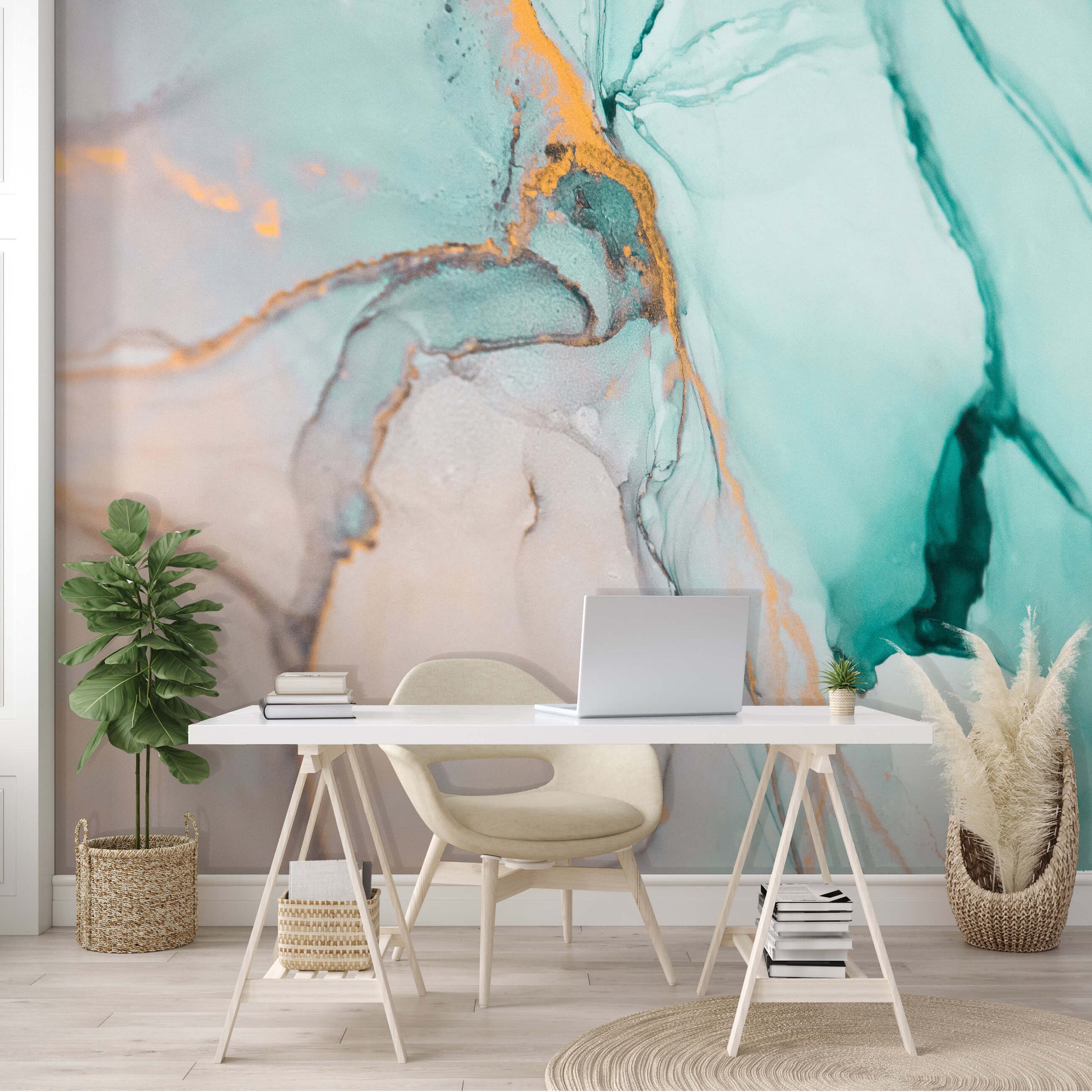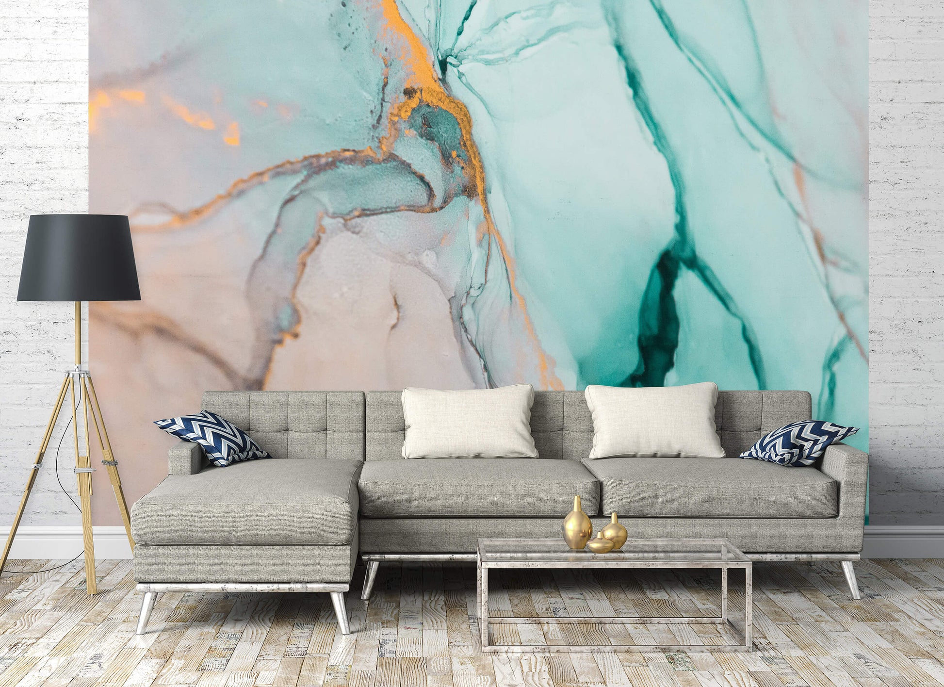 Light Ocean Blue Marble Non-woven Photo Wallpaper (W x H) 312 cm x 219 cm (123" x 86")
