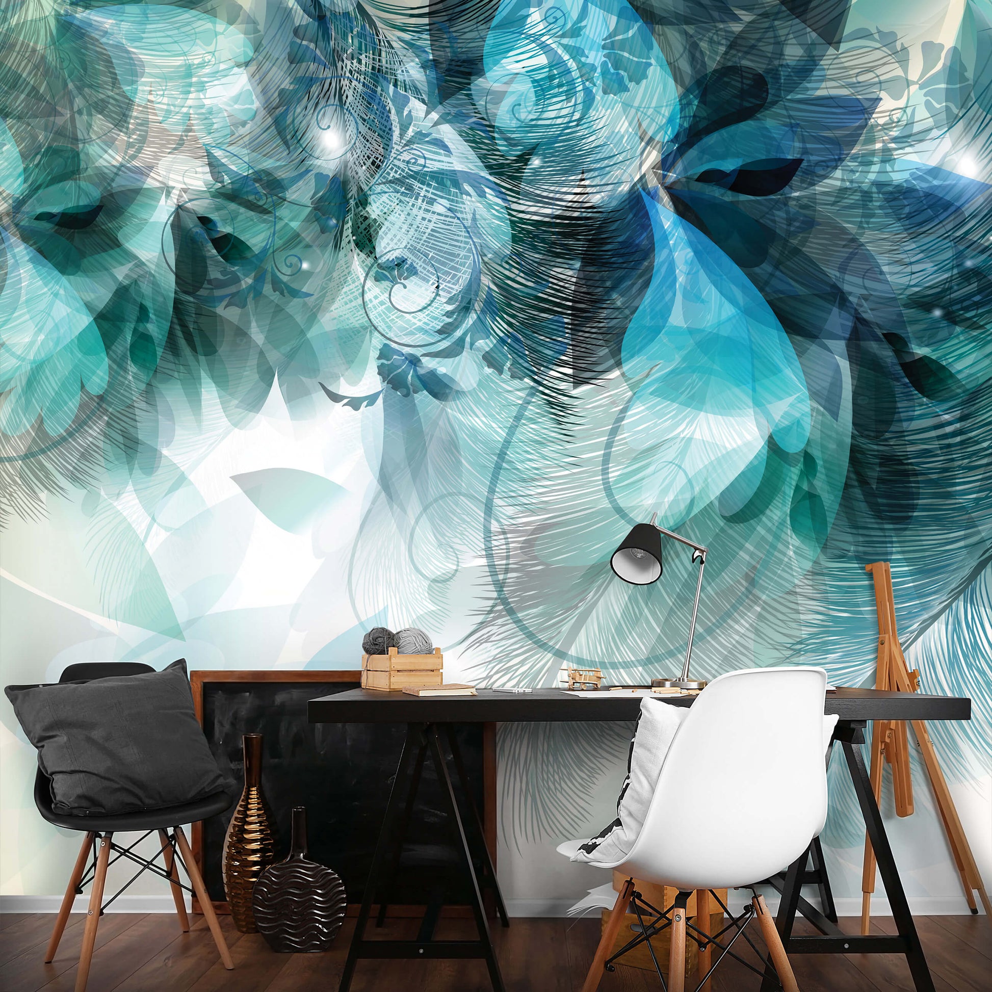 Feathers Blue Abstract 3D & Abstract Non-woven Photo Wallpaper (W x H) 312 cm x 219 cm (123" x 86")