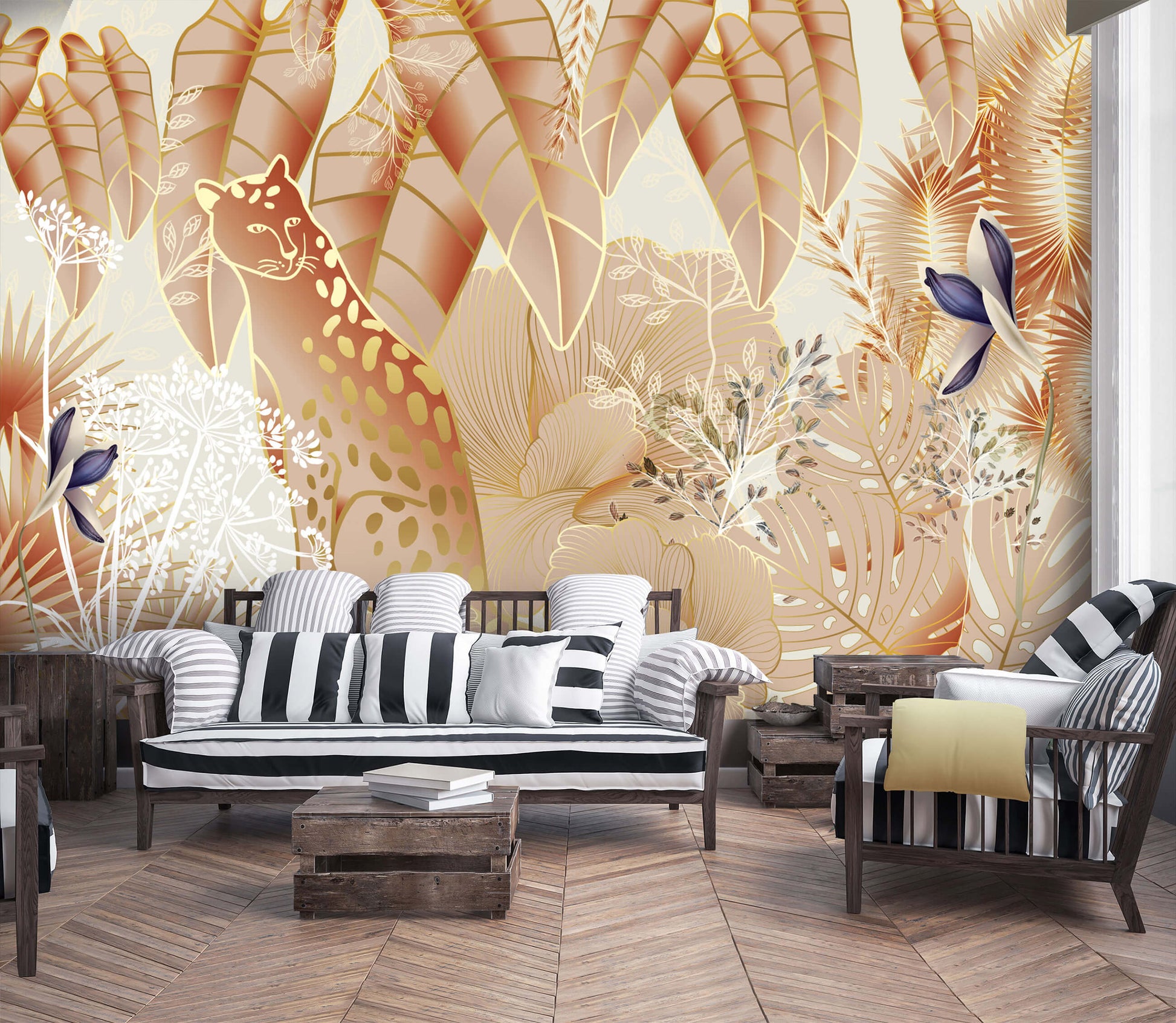 Jaguar Leaves Jungle Golden World Nature Non-woven Photo Wallpaper Size Selection