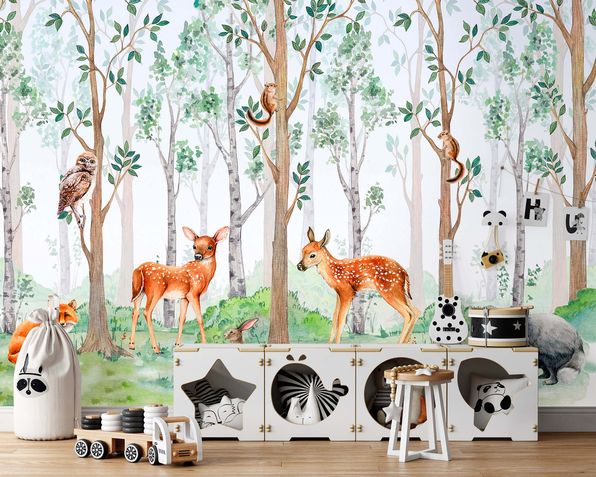 Forest Painting Nursery Animal Non-woven Photo Wallpaper Size Selection