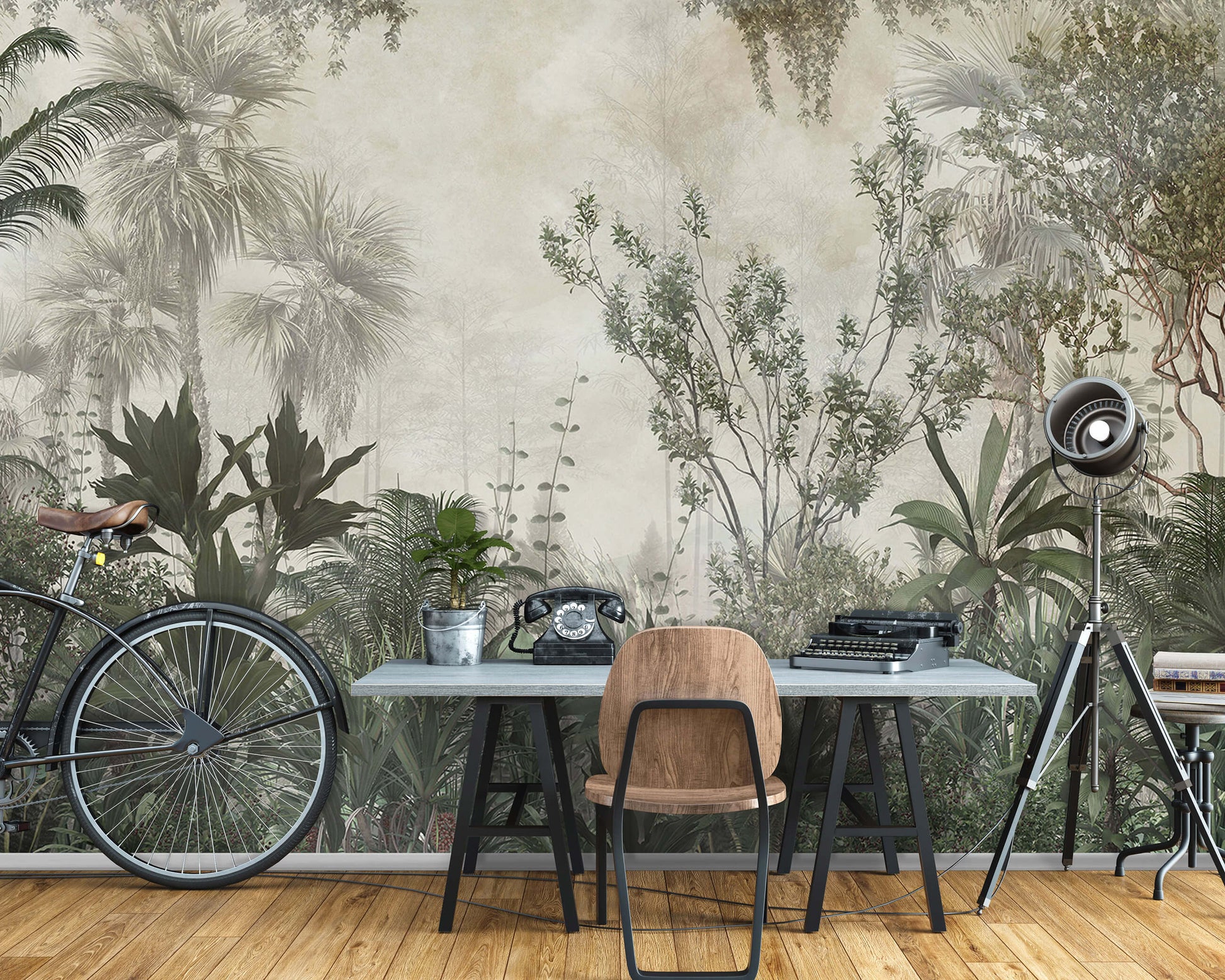 Jungle Botanical Rotten Faded Green Nature Non-woven Photo Wallpaper (W x H) 312 cm x 219 cm (123" x 86")