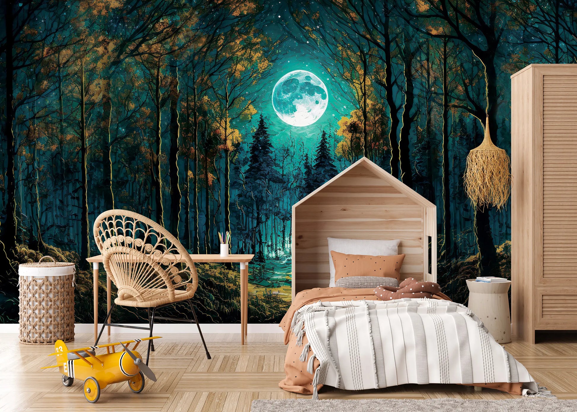 Fantasy Forest at Night Bedroom Non-woven Photo Wallpaper (W x H) 312 cm x 219 cm (123" x 86")