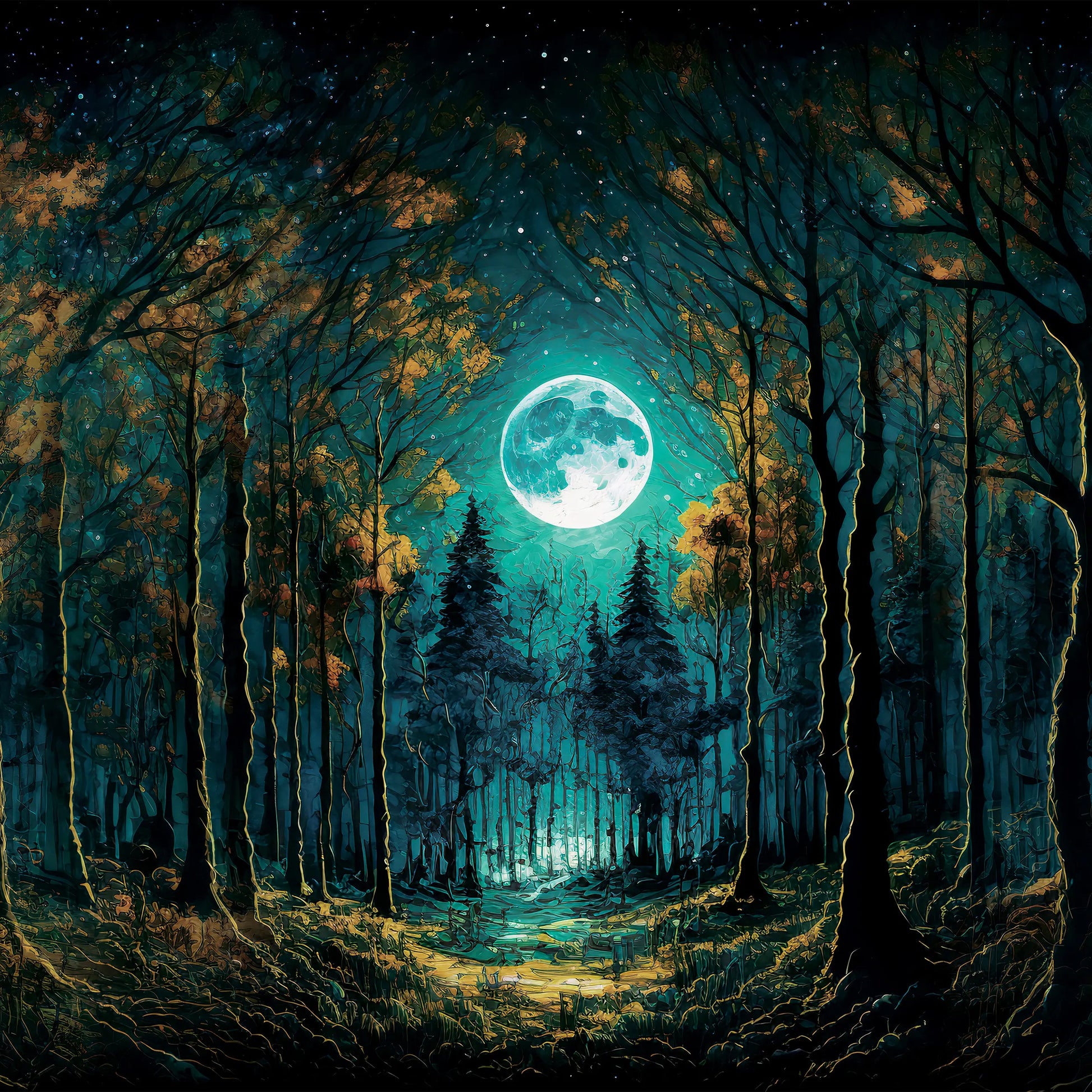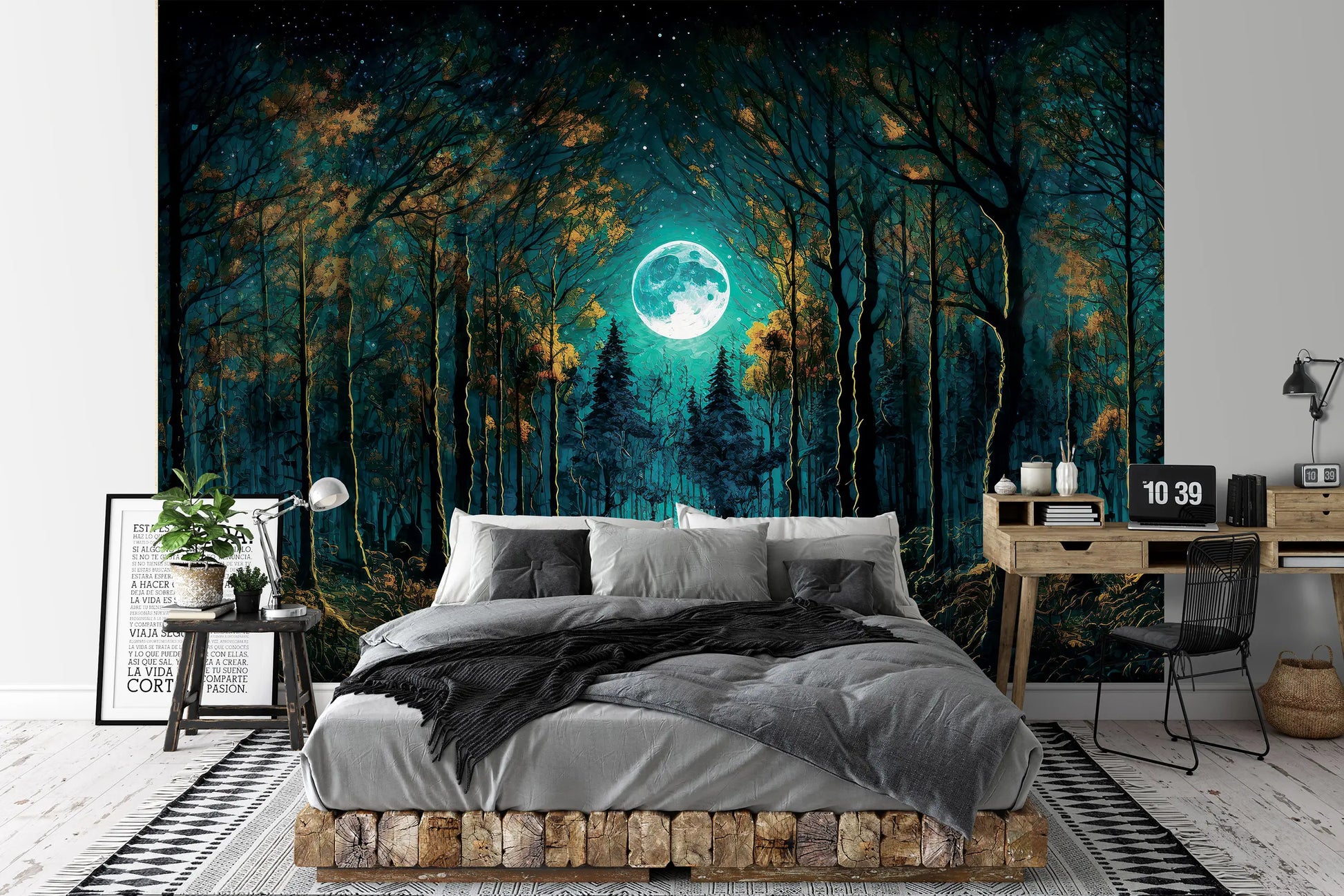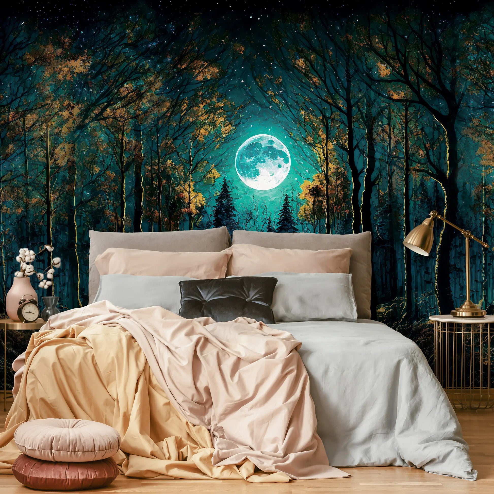 - Non-woven Photo Wallpaper - Mystical Night Forest - "Moon"