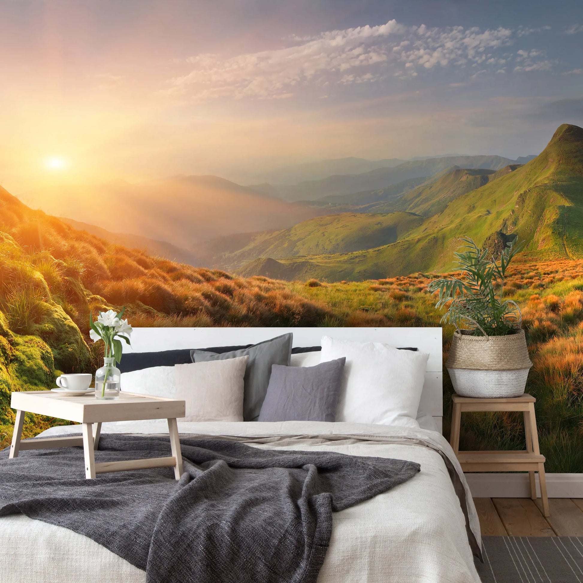 Green Mountains Bedroom Non-woven Photo Wallpaper (W x H) 312 cm x 219 cm (123" x 86")