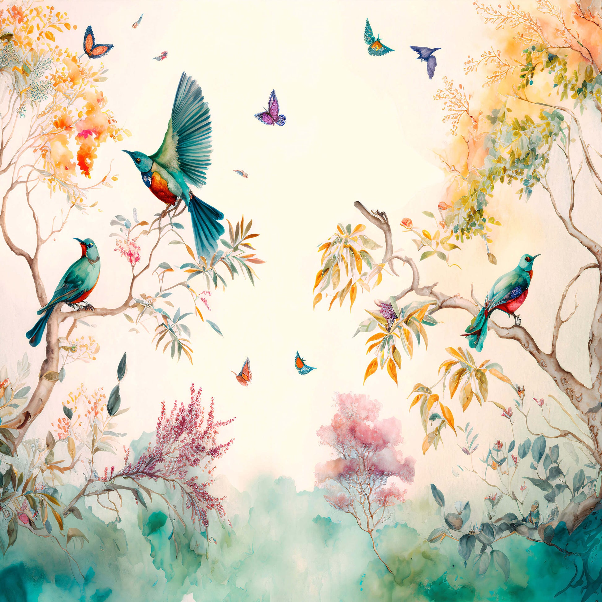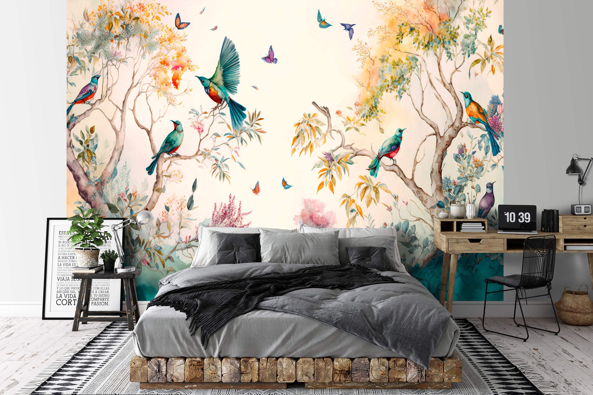 - Non-woven Photo Wallpaper - Colorful trees and birds