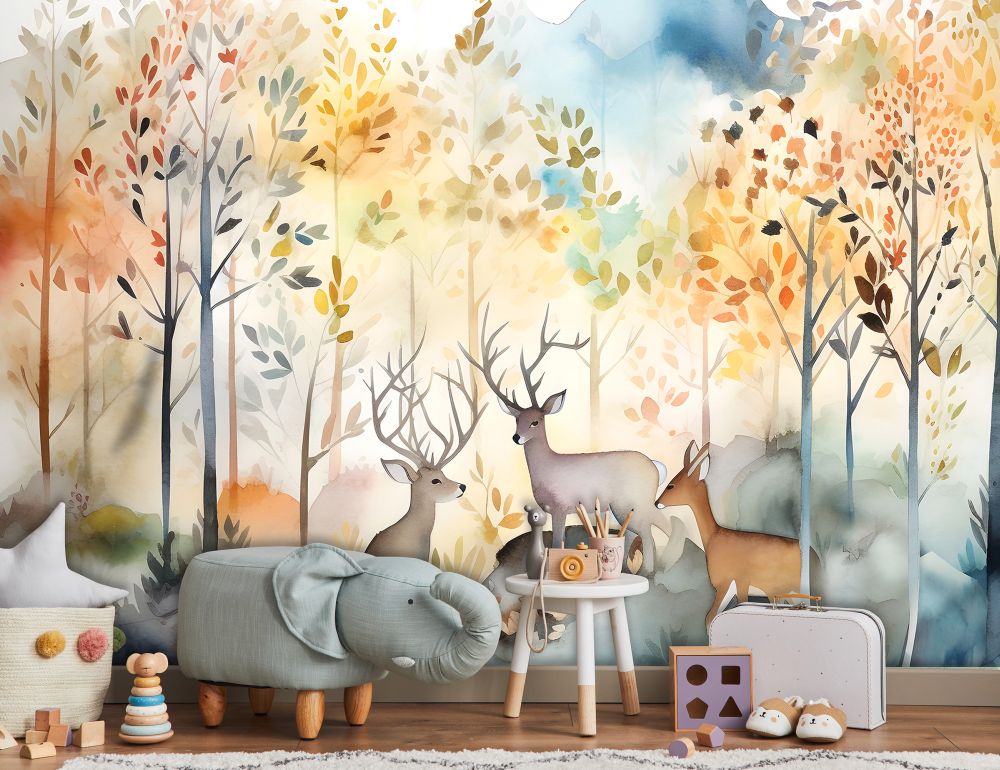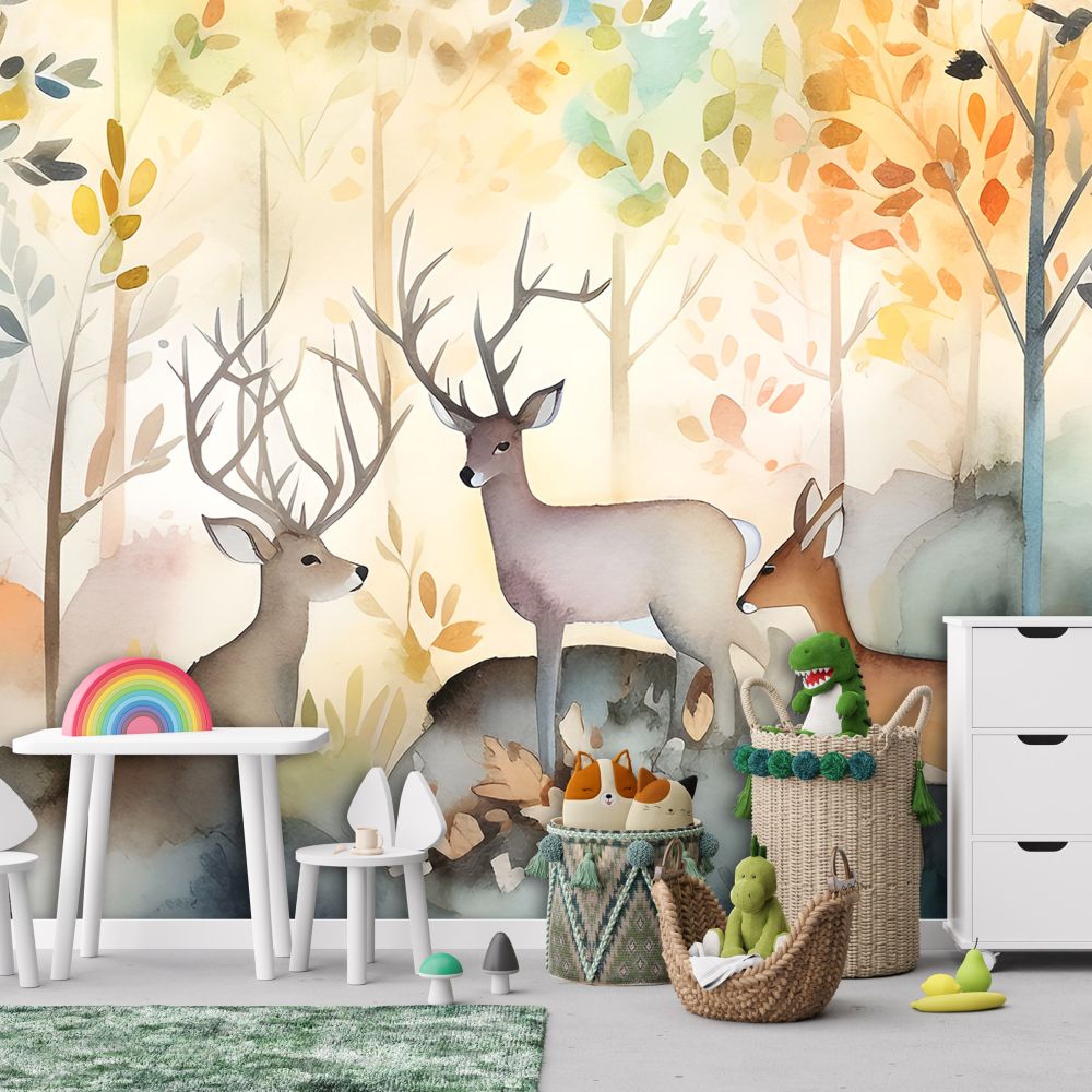 Calm Pastel Forest Animals Non-woven Photo Wallpaper (W x H) 312 cm x 219 cm (123" x 86")