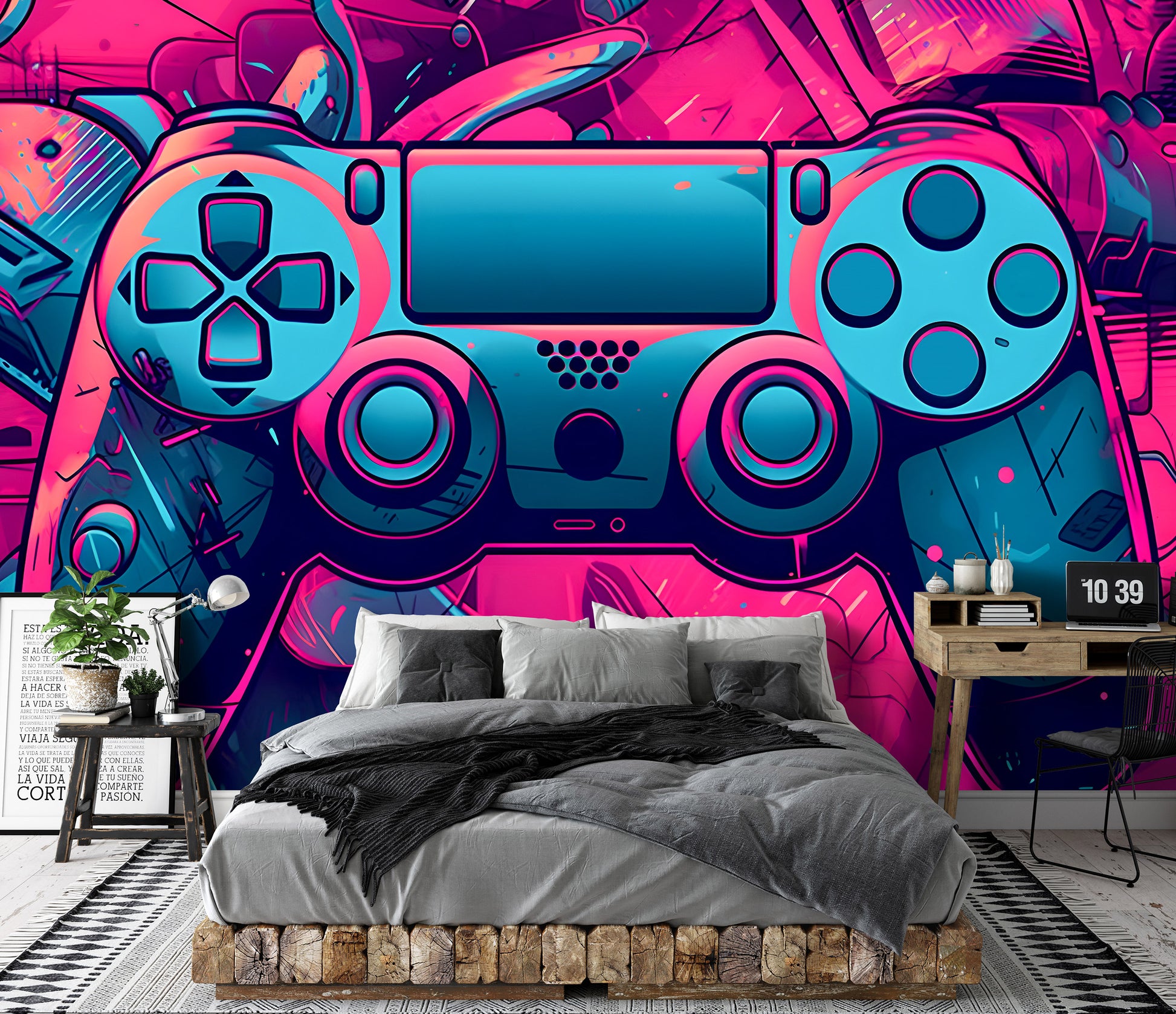 Gamer Console Controller Teen Bedroom Non-woven Photo Wallpaper (W x H) 312 cm x 219 cm (123" x 86")