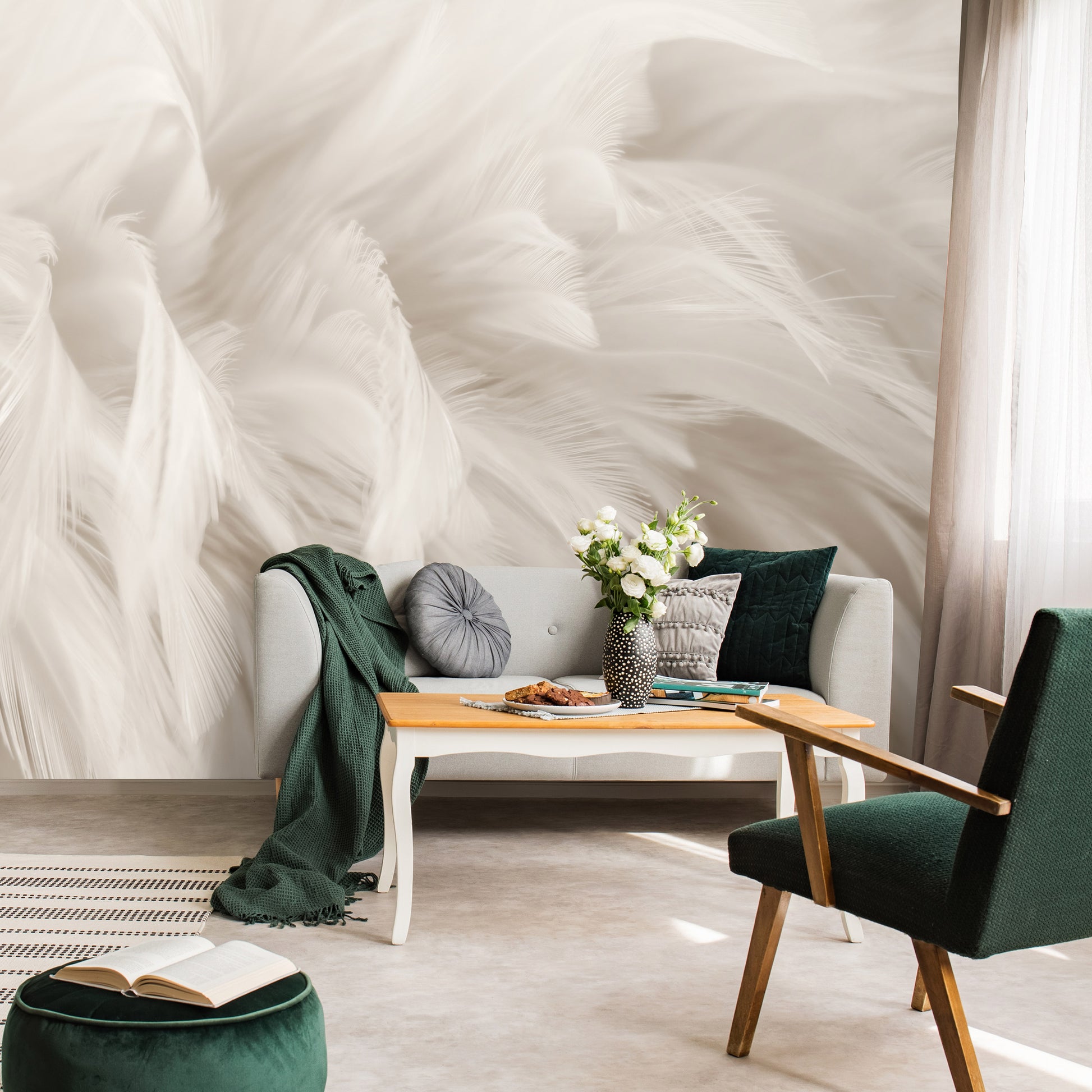 Delicate Feathers Design Living Room Animal Non-woven Photo Wallpaper (W x H) 312 cm x 219 cm (123" x 86")