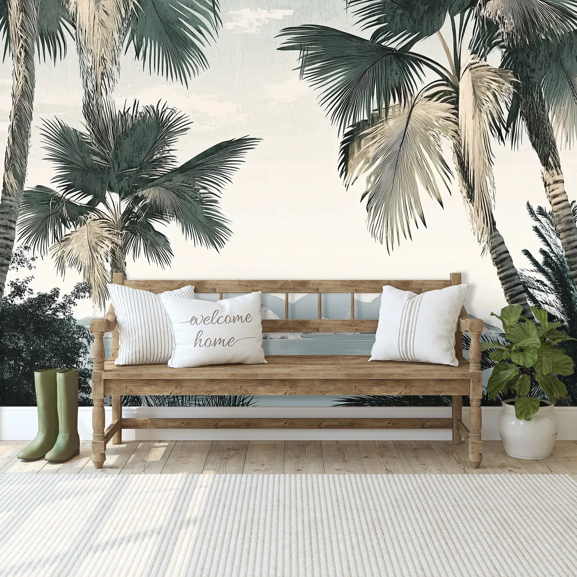 Large Palms Waiting Room and Reception Non-woven Photo Wallpaper (W x H) 312 cm x 219 cm (123" x 86")