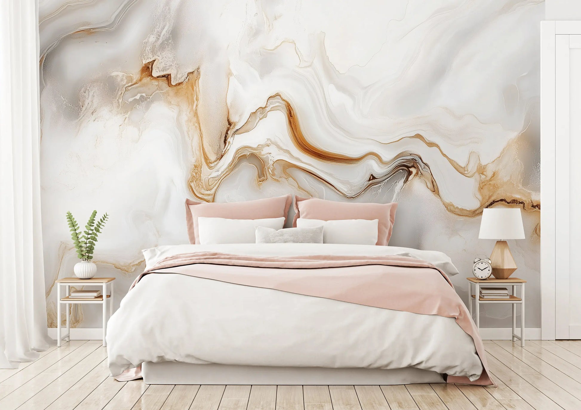 Marble Gold and White Living Room Non-woven Photo Wallpaper (W x H) 312 cm x 219 cm (123" x 86")
