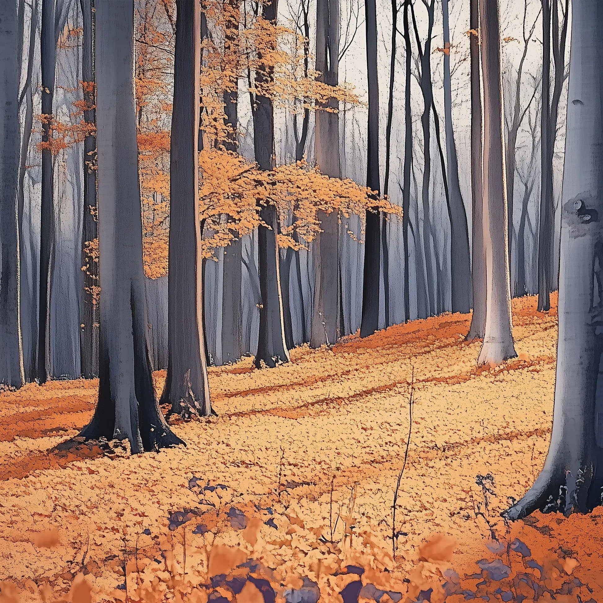 - Non-woven Photo Wallpaper - Orange Autumn forest - painted trees