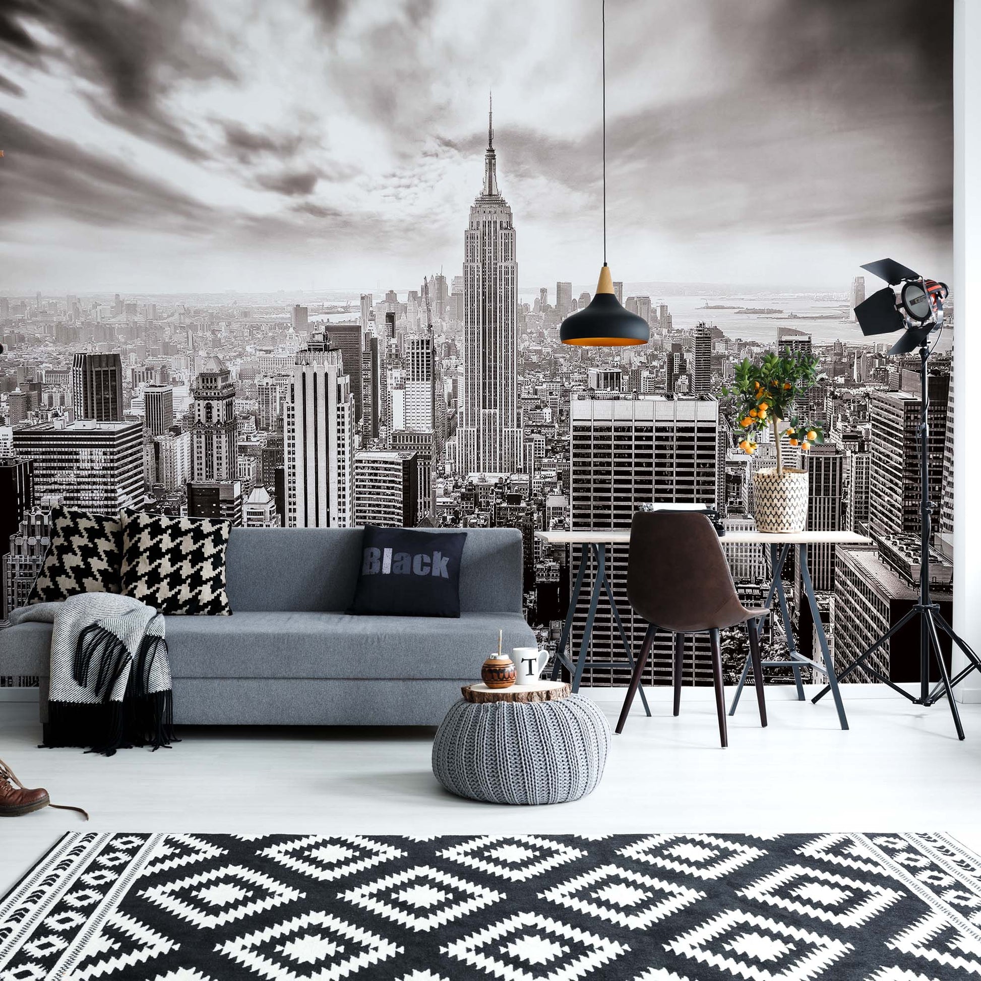 Black and White New York Panorama Cityscape Non-woven Photo Wallpaper (W x H) 312 cm x 219 cm (123" x 86")