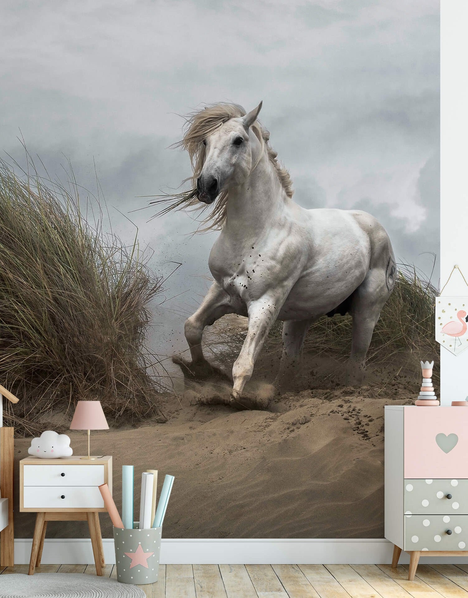 White Wild Horse Animal Wallpaper Mural (W x H) 384 cm x 260 cm (151" x 102")
