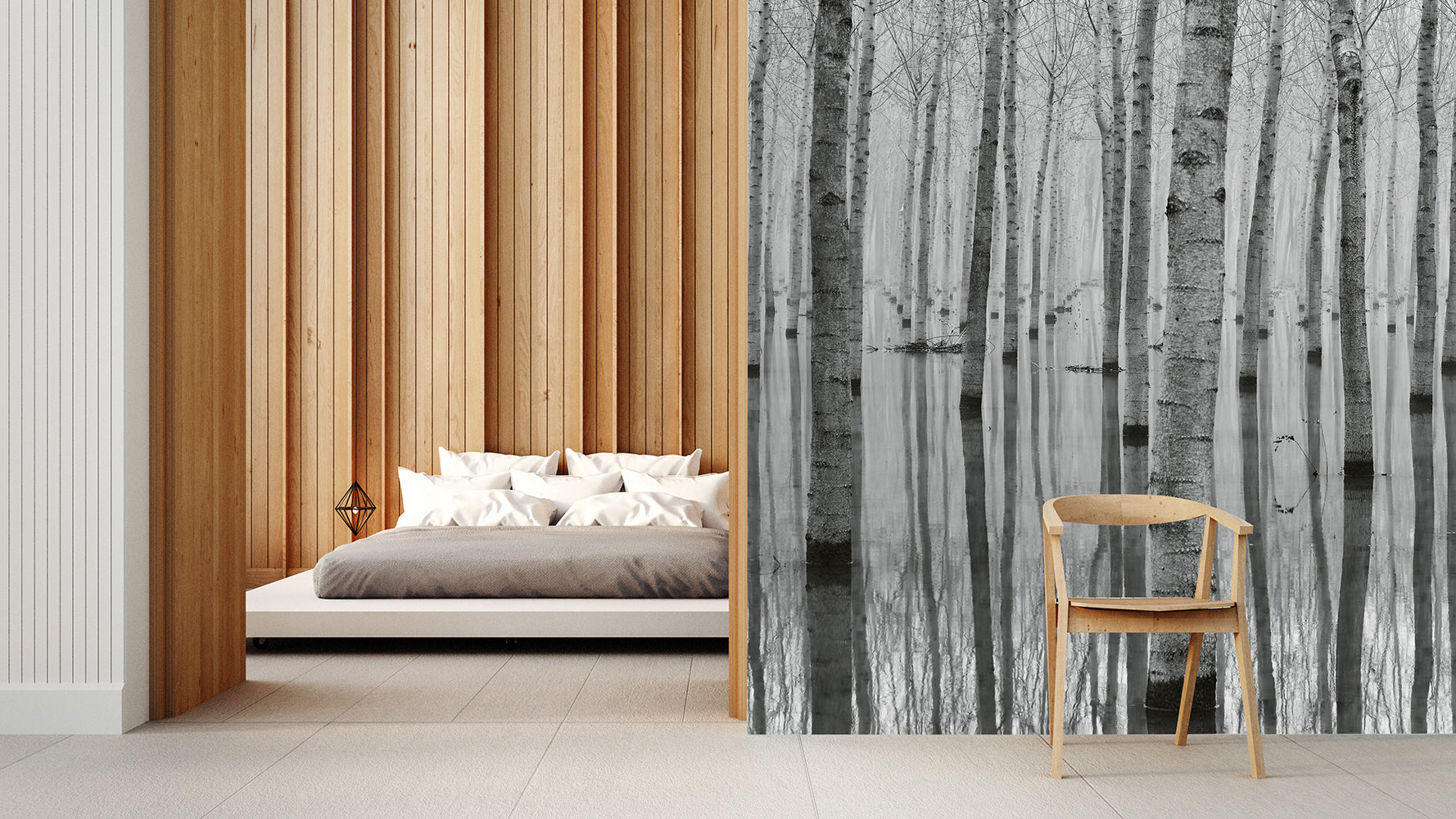 Birch Forest in the Water Nature Wallpaper Mural (W x H) 384 cm x 260 cm (151" x 102")