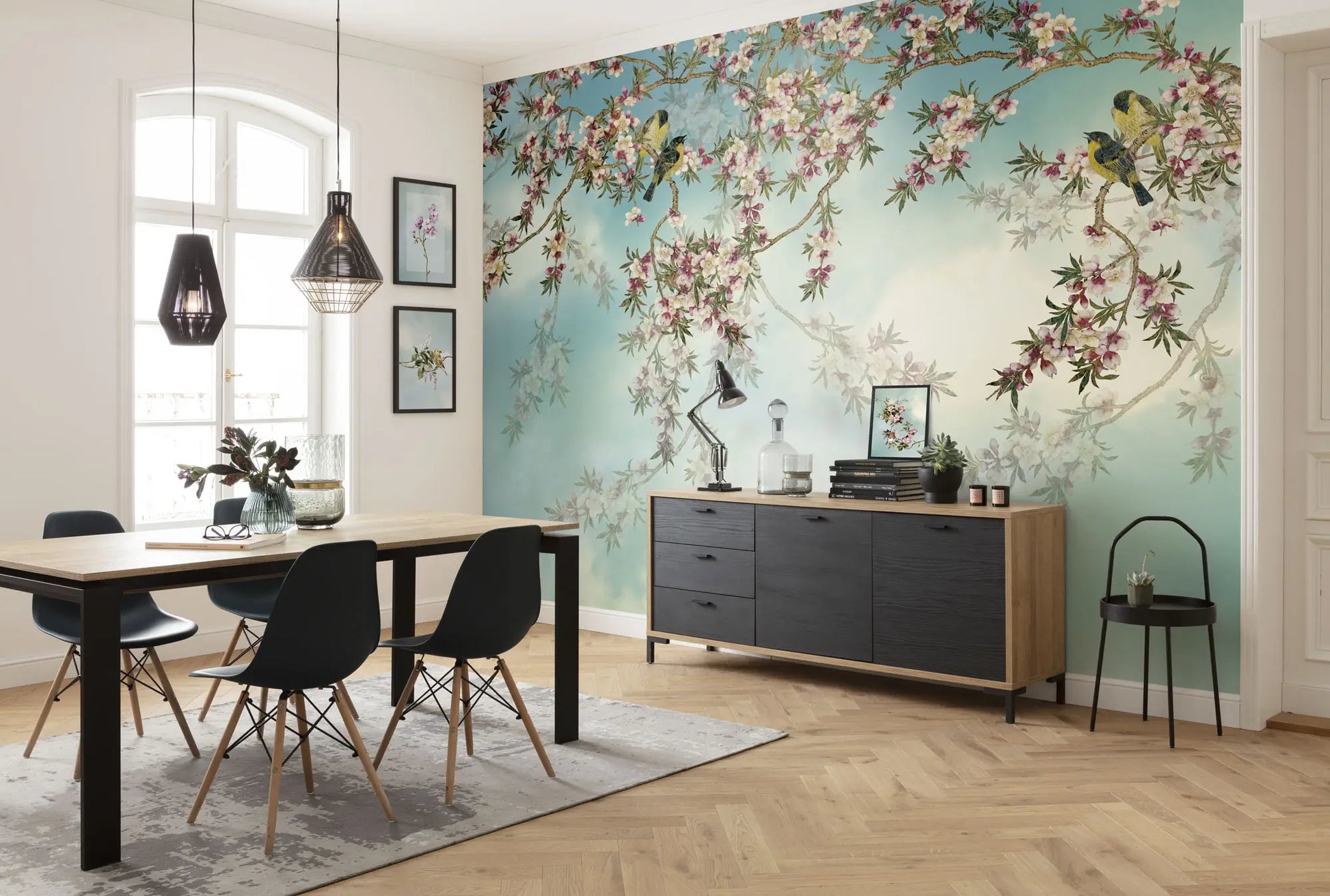 Pink Flowers Tree Branches Photo Wallpaper (W x H) 368cm x 254cm (144" x 100")