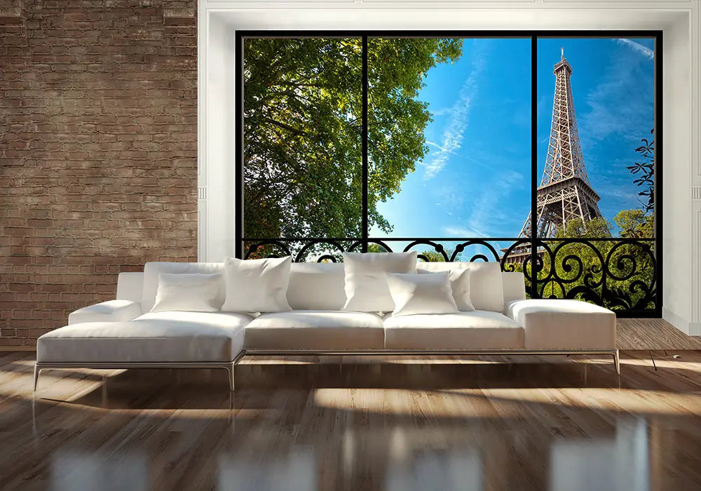 - Eiffel Tower view from penthouse window Paper Photo Wallpaper 130g/sqm