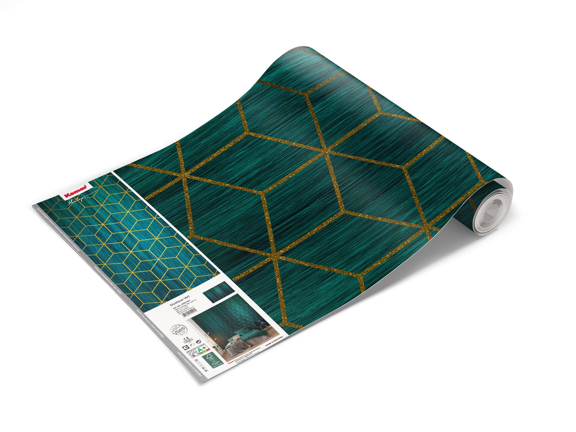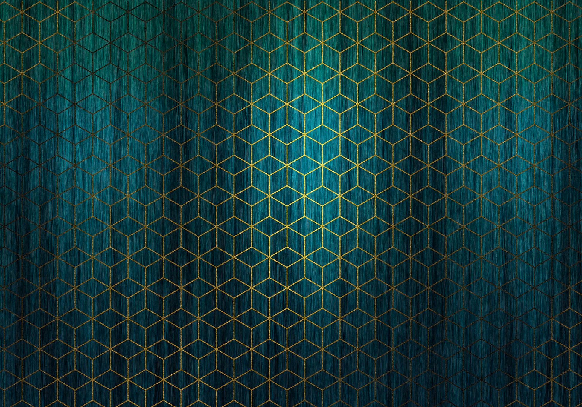 Mystique Vert Green and Gold Geometric Art Non-woven photo wallpaper 400 cm x 280 cm | 157" x 110"