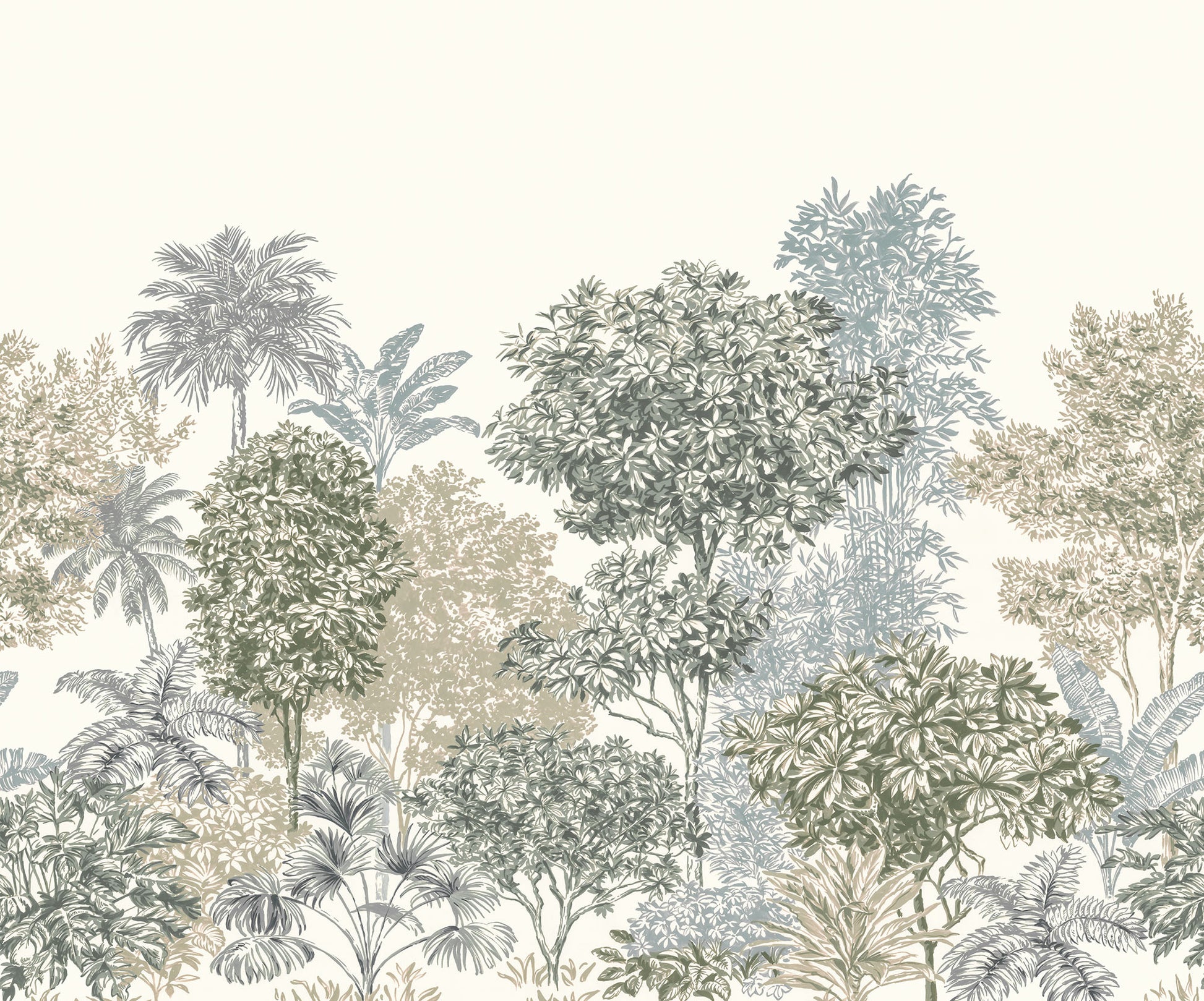 Painted Palms Living Room Botanical Non-woven photo wallpaper 350 cm x 250 cm | 137" x 98"