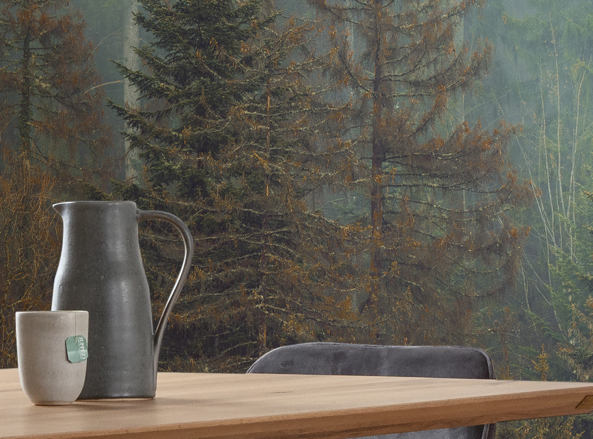 Foggy Firs European Forest Scenry Nature Non-woven photo wallpaper 400 cm x 250 cm | 157" x 98"