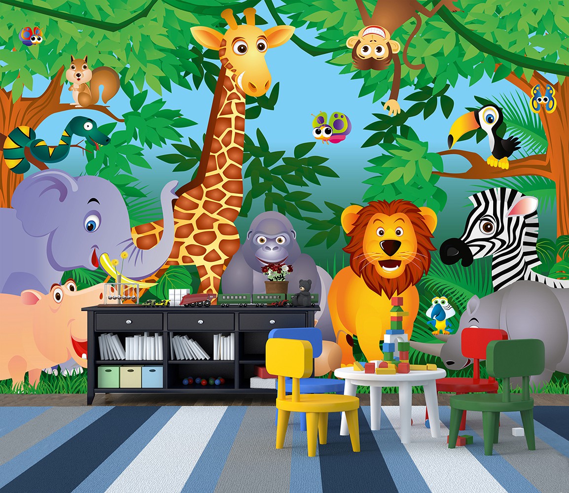 Animals in The Jungle Nursery Nursery Wallpaper Mural (W x H) 384 cm x 260 cm (151" x 102")
