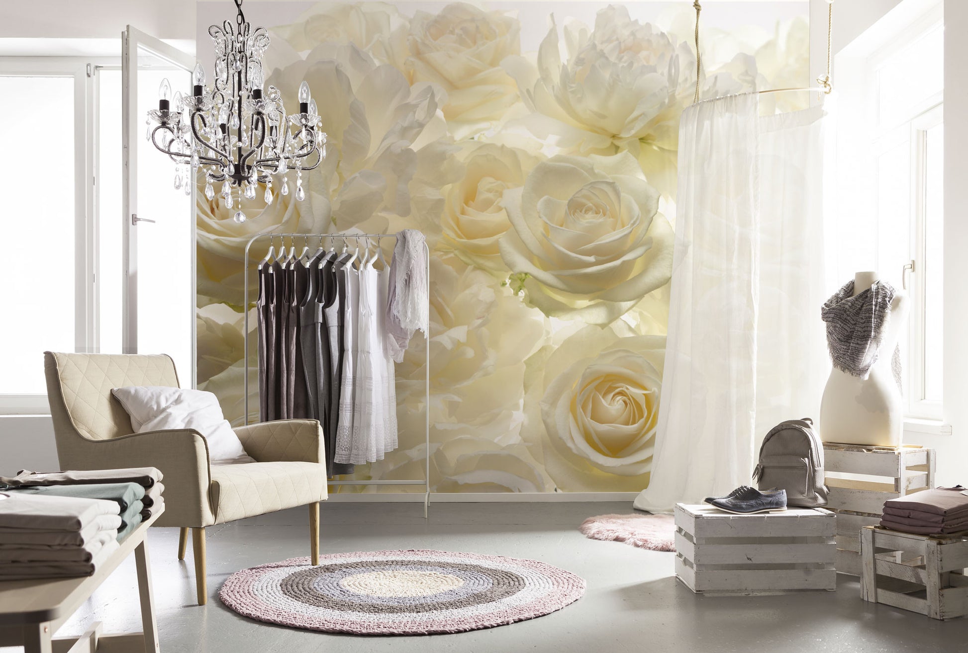 Beige Roses Dressing Room and Bedroom Floral Non-Woven Wall Mural (W x H) 368cm x 248cm (144" x 98")